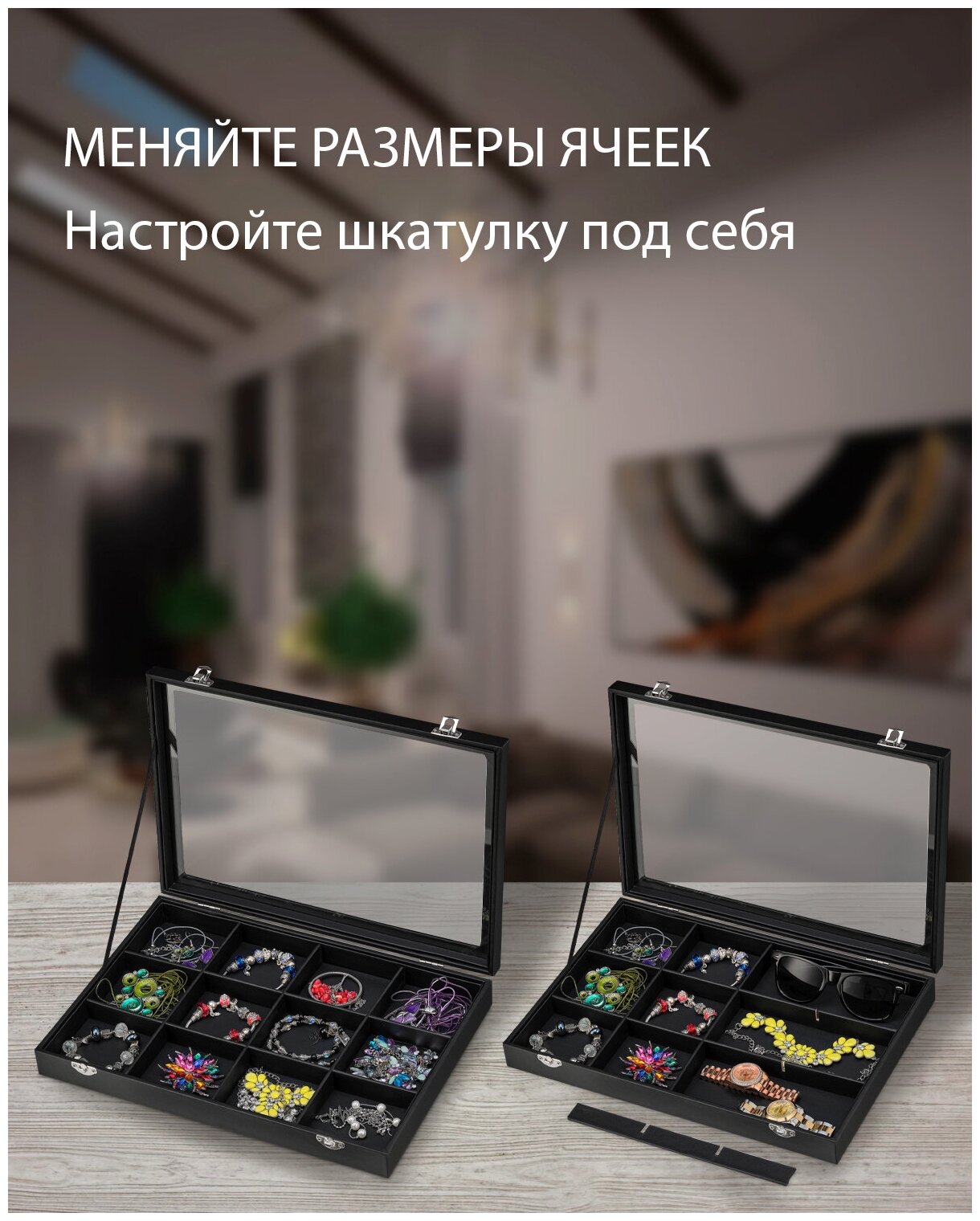 Шкатулка для хранения украшений большая 35х24х5 см / Органайзер для бижутерии / Коробка под украшения / Держатель A30