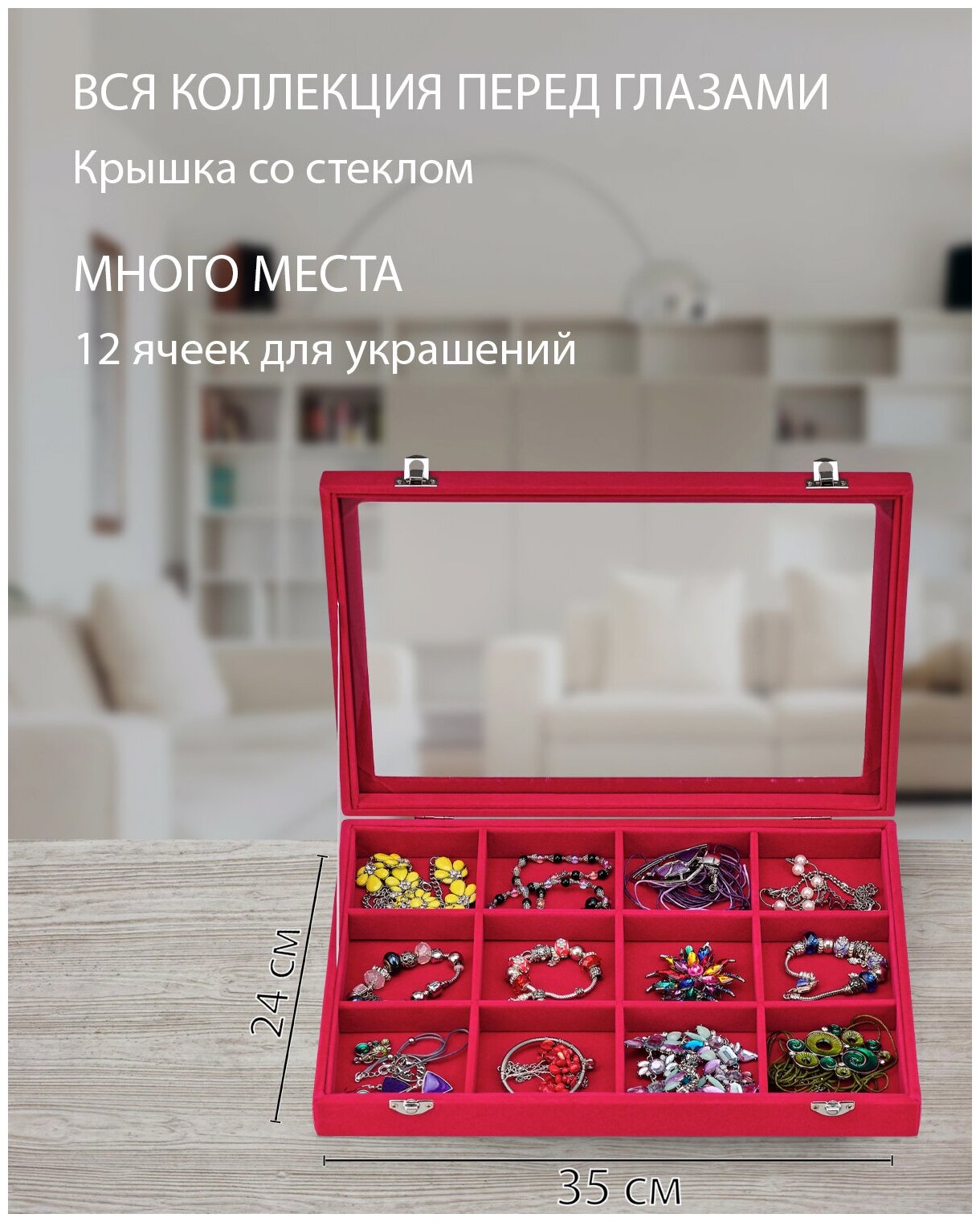 Шкатулка кейс для украшений и бижутерии большая / Органайзер для хранения / Подставка прозрачная 35х24х5 см A212-Pink информация: