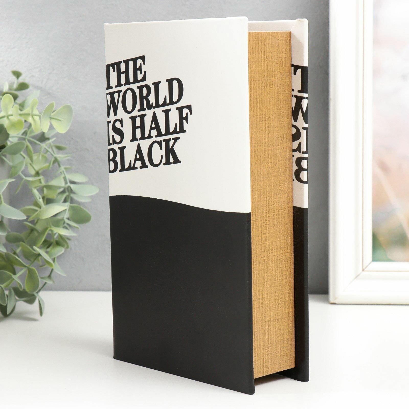 Шкатулка книга-сейф "Мир наполовину черный", дерево, искусственная кожа, 21x13x5 см информация: