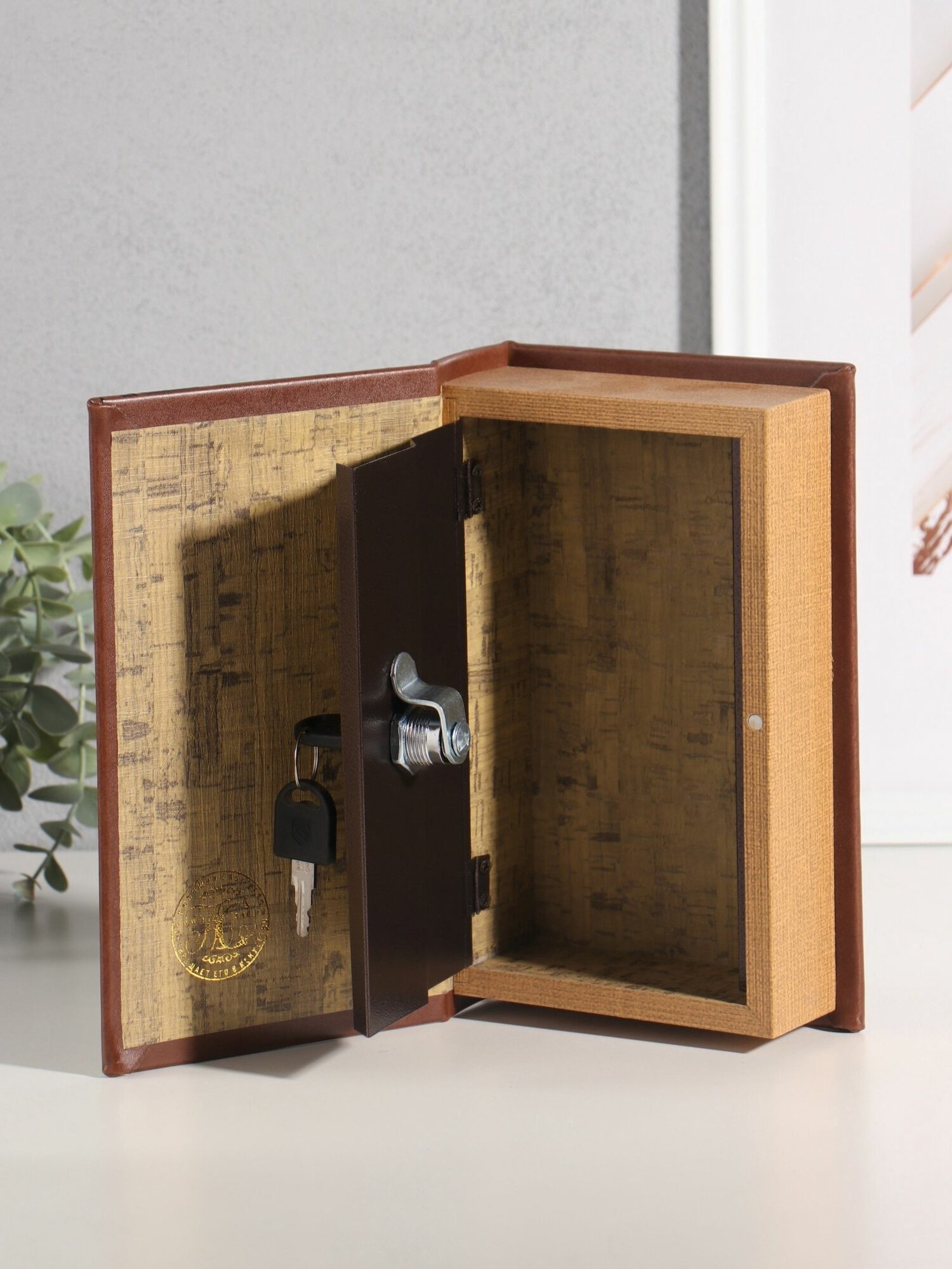 Шкатулка книга-сейф «Растение в горшке», дерево, искусственная кожа, 21×13×5 см
