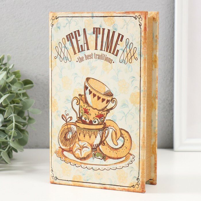 10 цен на Шкатулка книга-сейф «Время для чая», дерево, искусственная кожа, 21×13×5 см