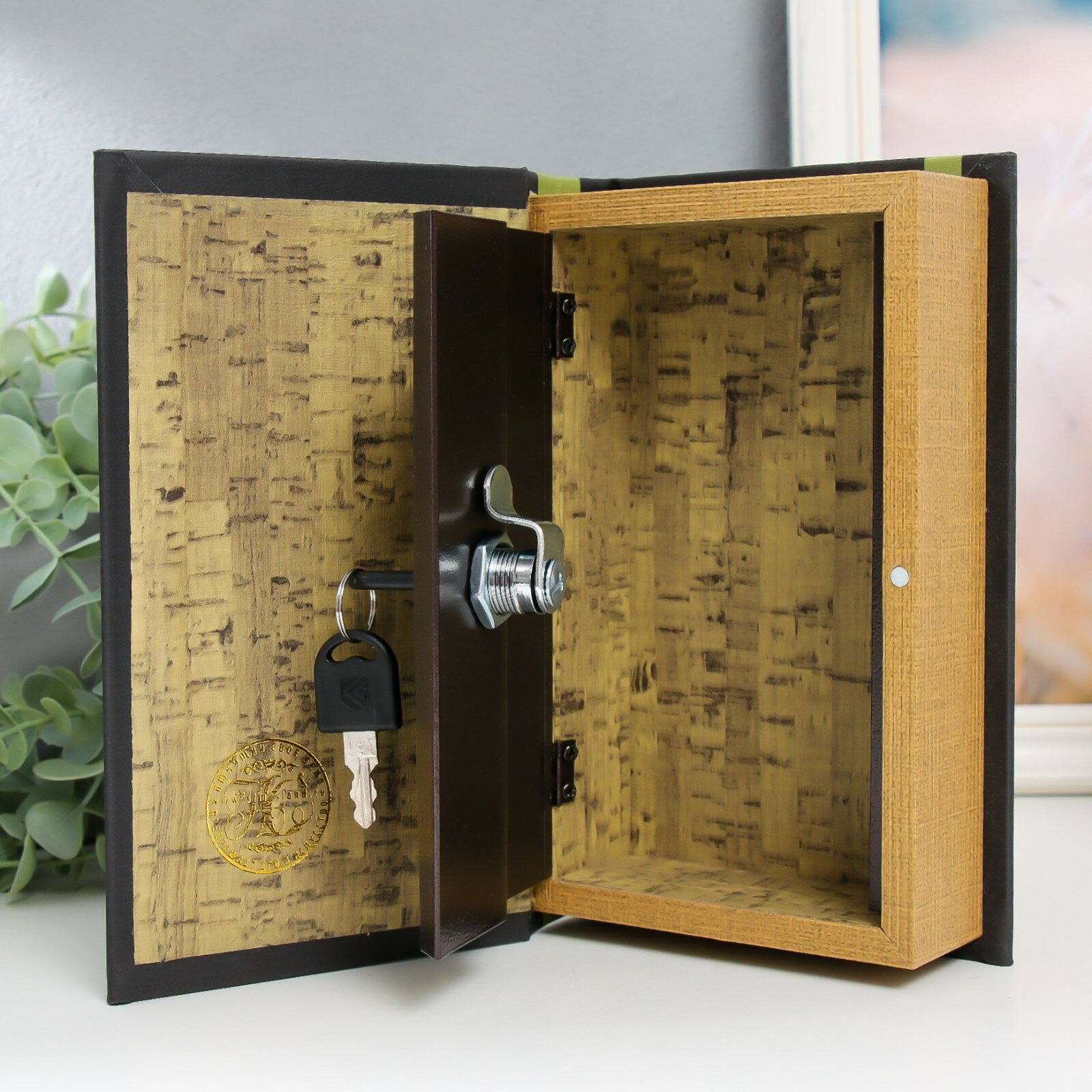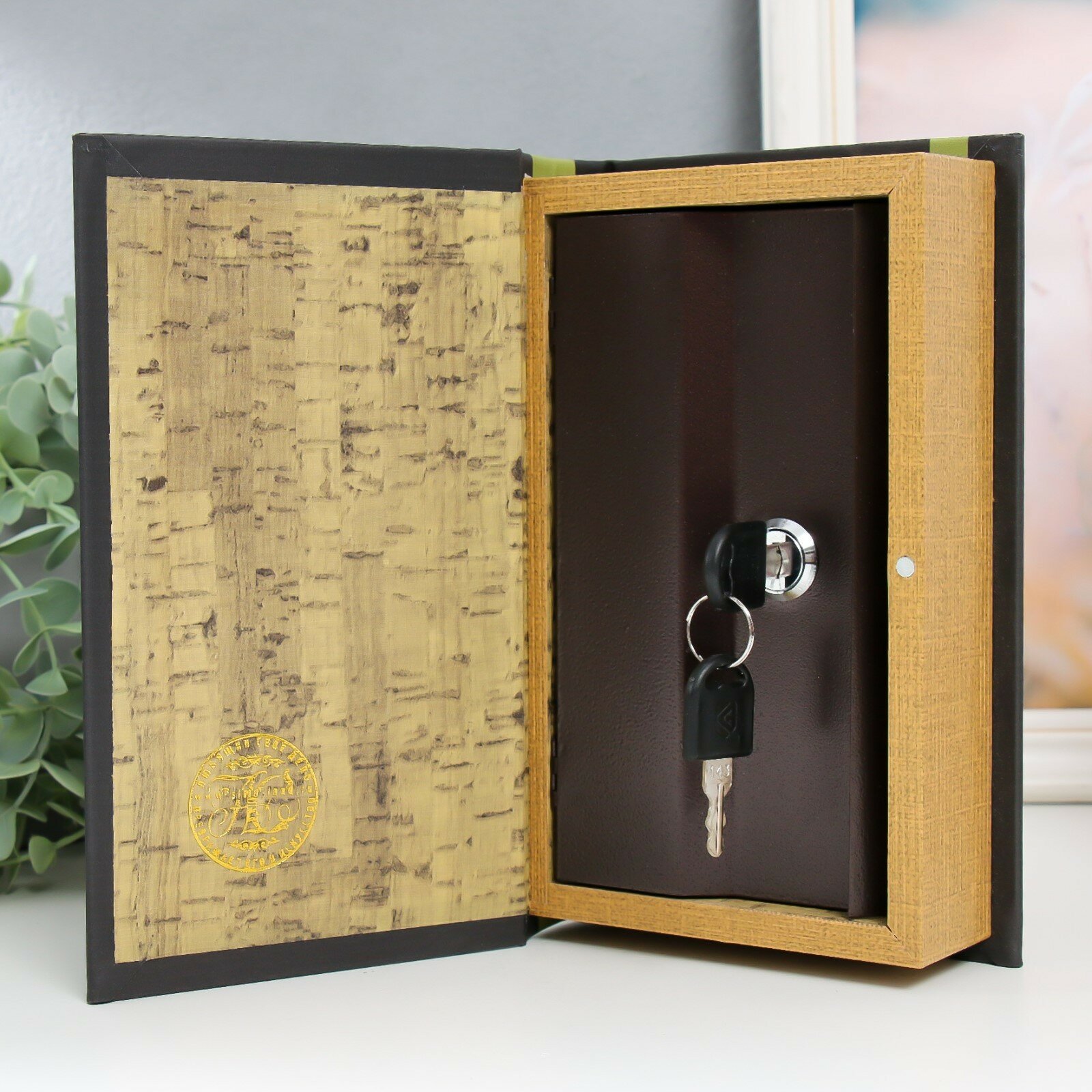Шкатулка книга-сейф «Растение в горшке», дерево, искусственная кожа, 21×13×5 см