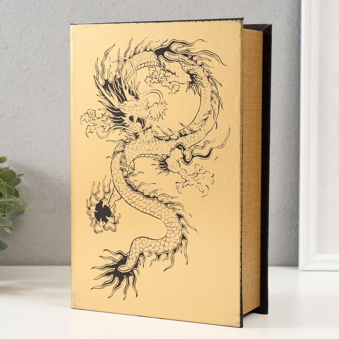 10 цен на Шкатулка книга-сейф «Китайский дракон», дерево, искусственная кожа, тиснение, золото 27×18×7 см