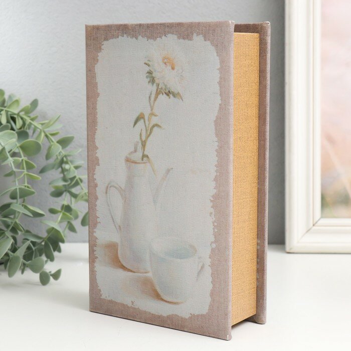 Шкатулка книга-сейф «Белая хризантема в чайнике», дерево, искусственная кожа, 21×13×5 см информация:
