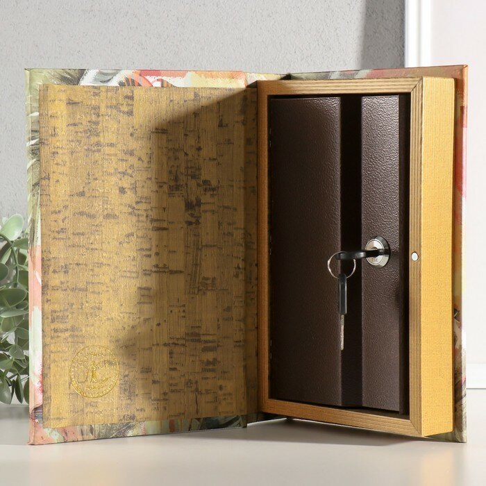 Шкатулка книга-сейф Растительный узор , дерево и искусственная кожа, с замком, 27 18 7 см 2 120 ₽