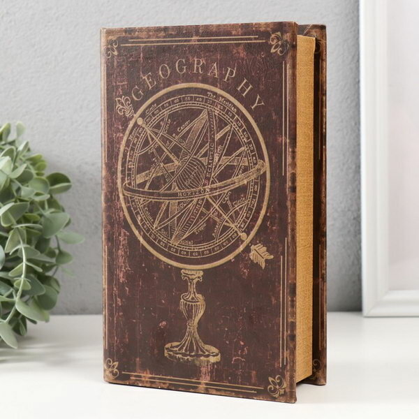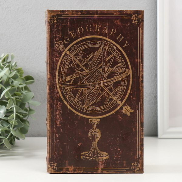Шкатулка книга-сейф "Старинный глобус с осями", дерево, искусственная кожа, 21x13x5 см информация: