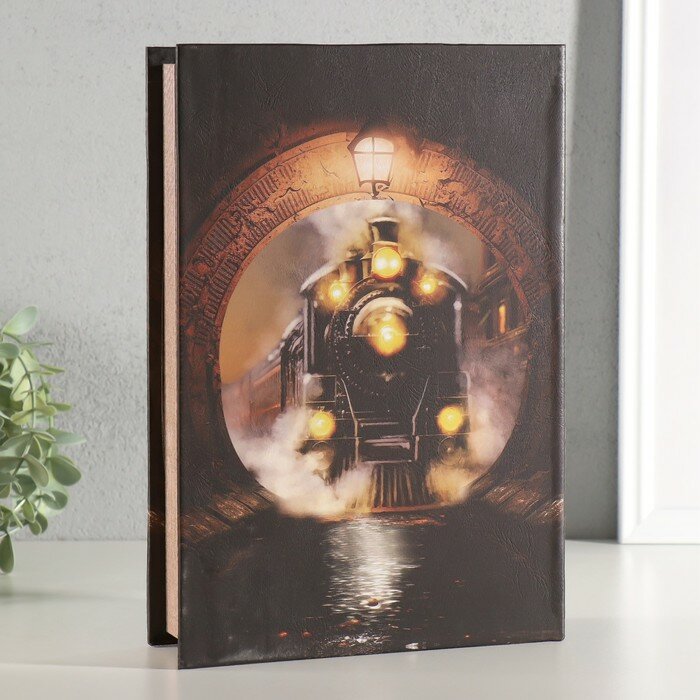 10 цен на Шкатулка-книга световая «Поезд в туннеле», дерево, искусственная кожа, 28×19×6 см