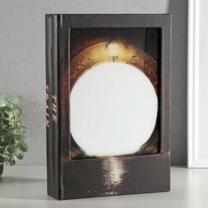 Шкатулка-книга световая «Поезд в туннеле», дерево, искусственная кожа, 28×19×6 см информация: