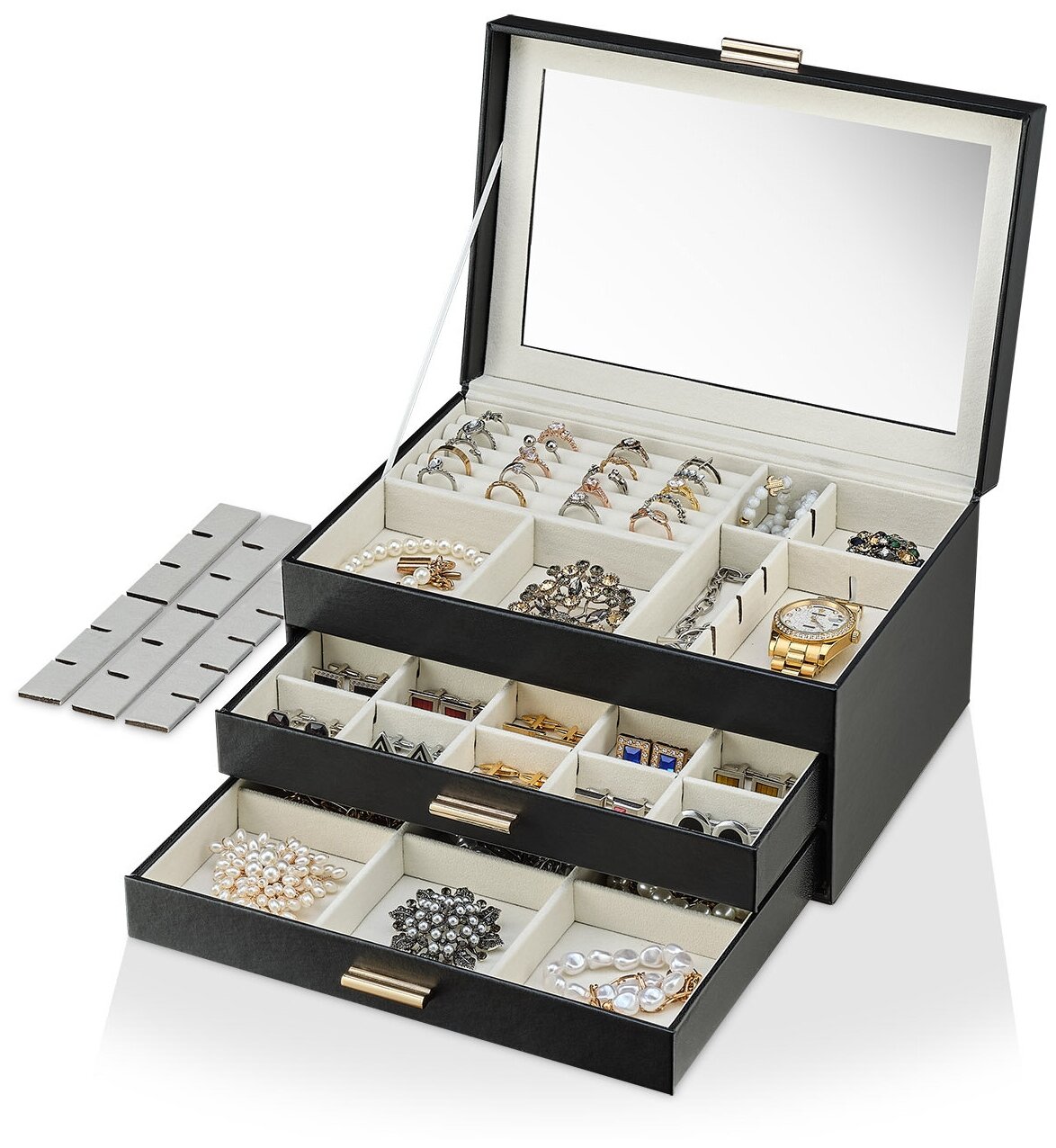 10 цен на Шкатулка для украшений со стеклом / Органайзер для хранения бижутерии / Коробка для колец / Подставка под украшения Ksi Black