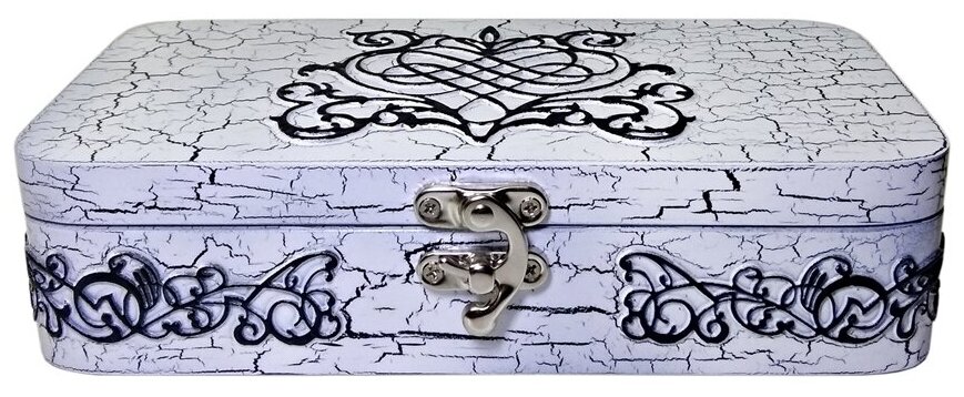 Бело-черная шкатулка для денег, украшений. Купюрница (20х10х5см) Деревянный клатч. UNIRU информация: