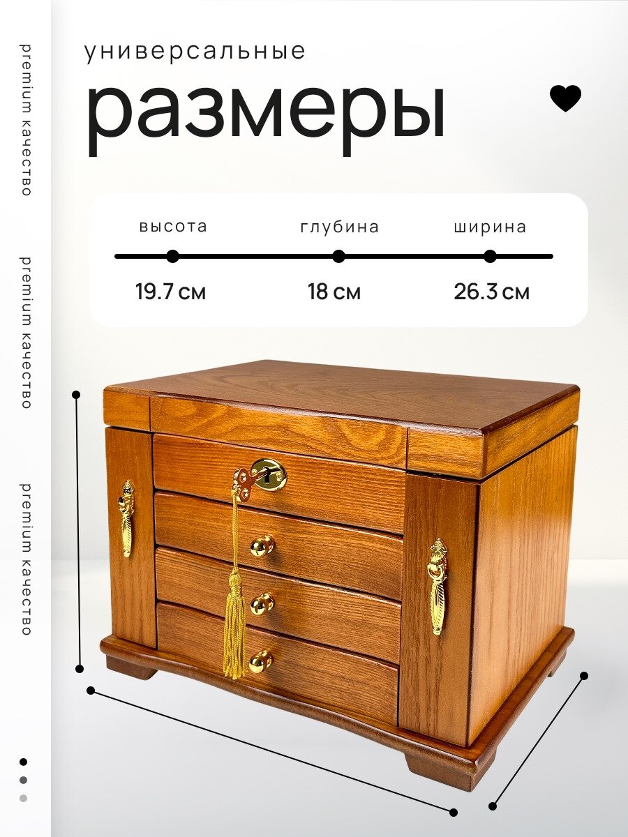 Отзывы на Деревянная шкатулка-сундук для украшений. Компактная с замком и зеркалом. 18 отделений Идеальный подарок