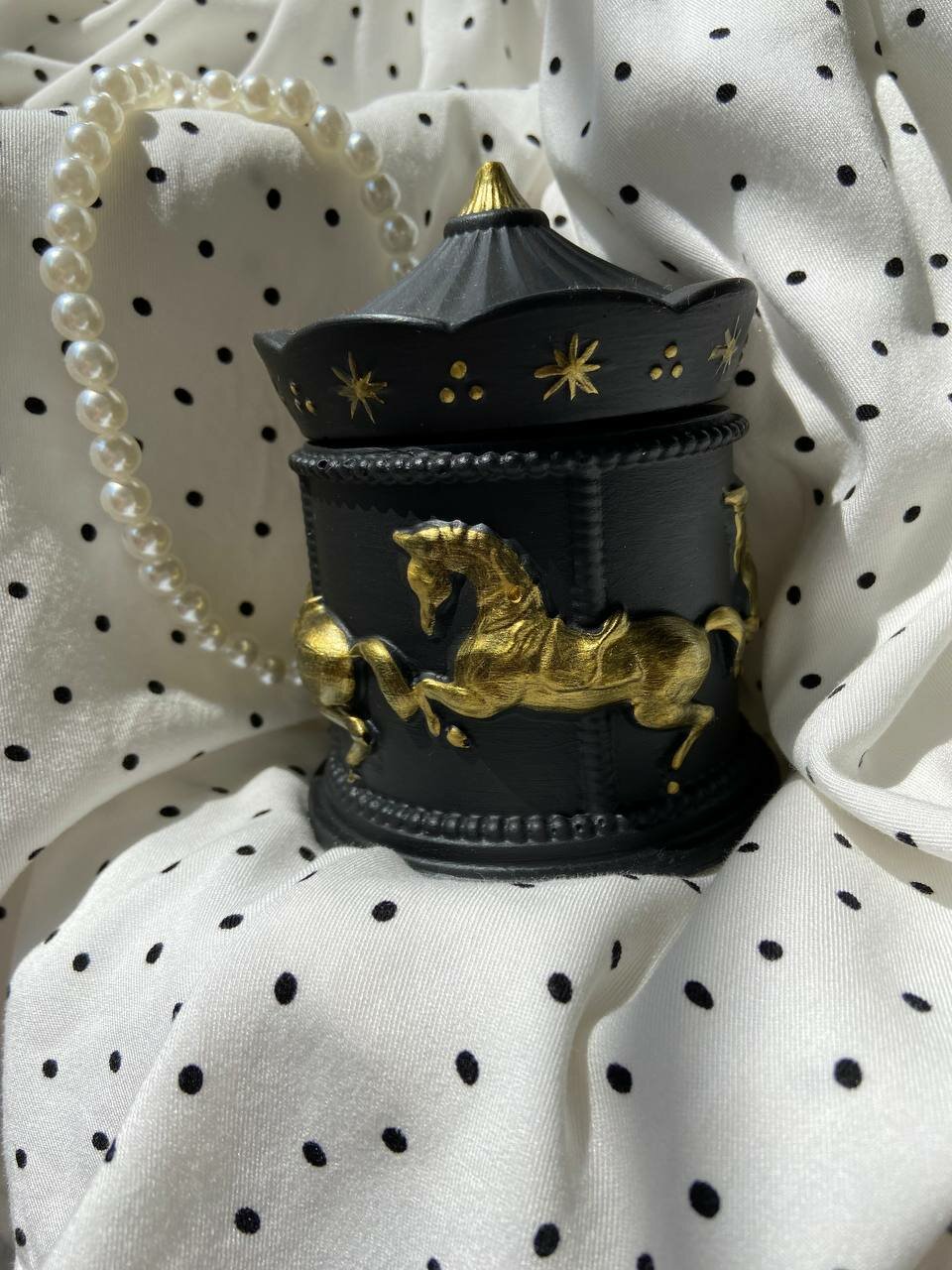 Гипсовая шкатулка "Карусель" черна для украшений/гипсовый подсвечник информация: