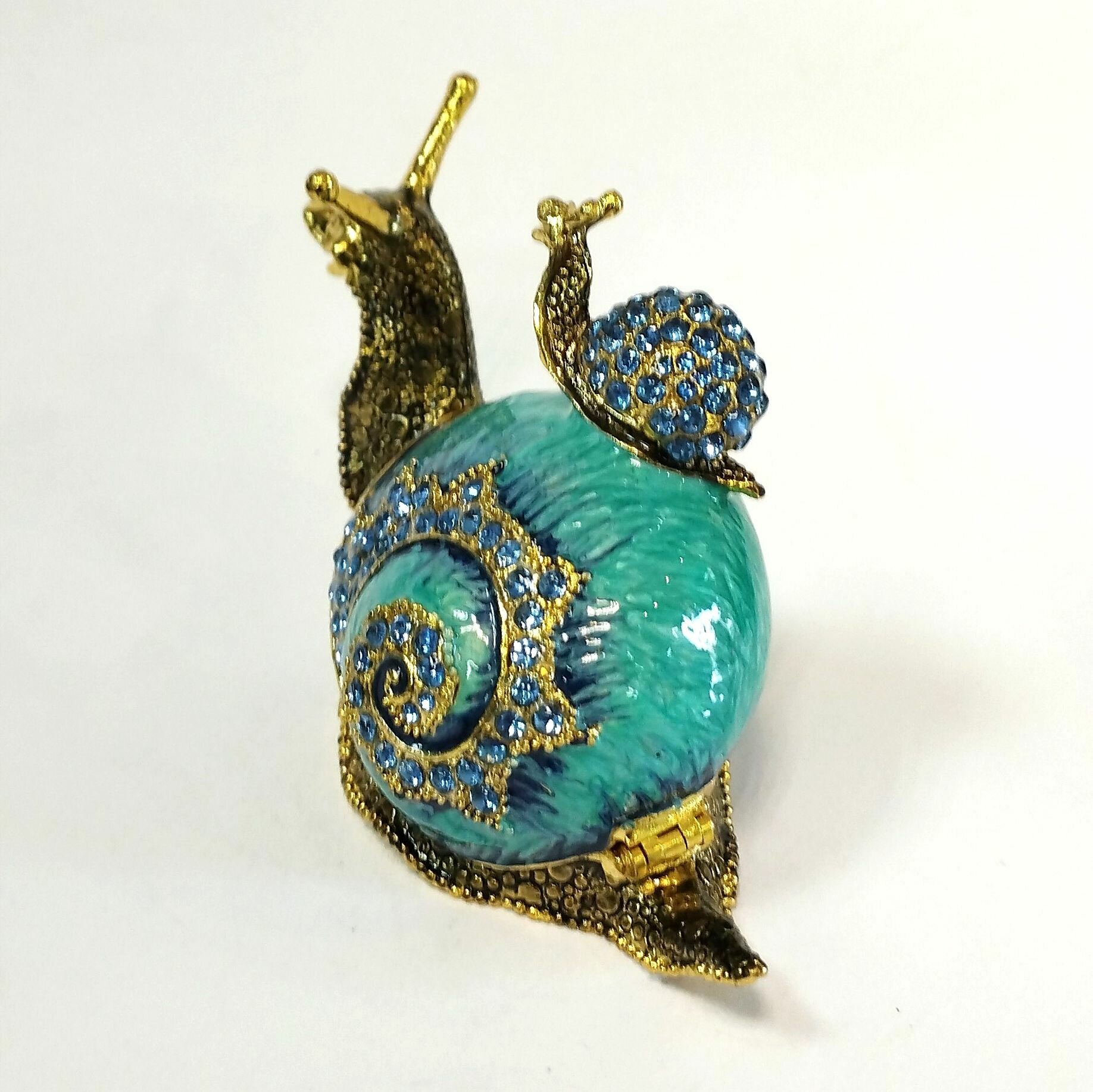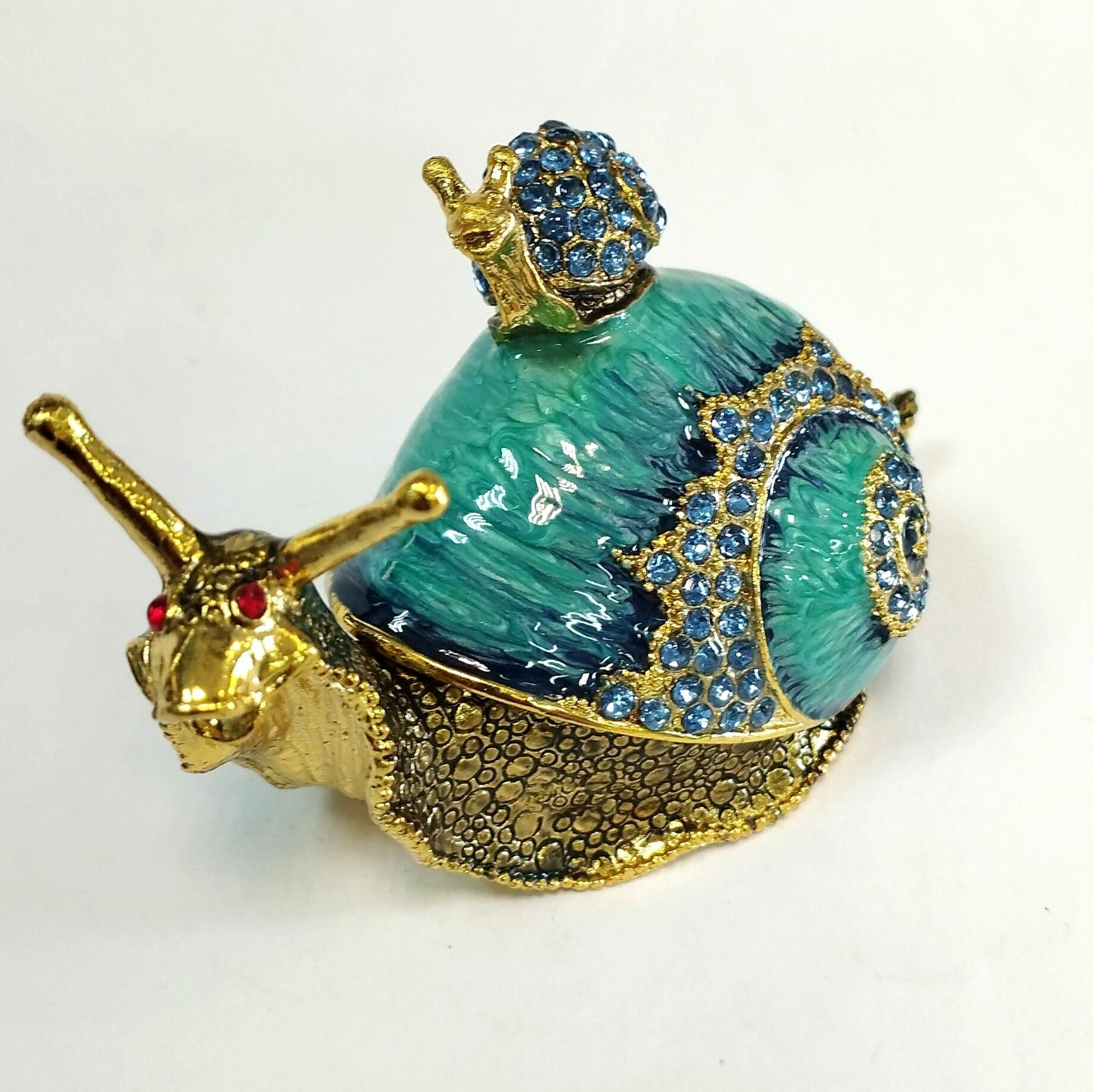 Шкатулка Улитка со стразами в стиле Фаберже, металл, фигурная, высота 5.2 см информация: