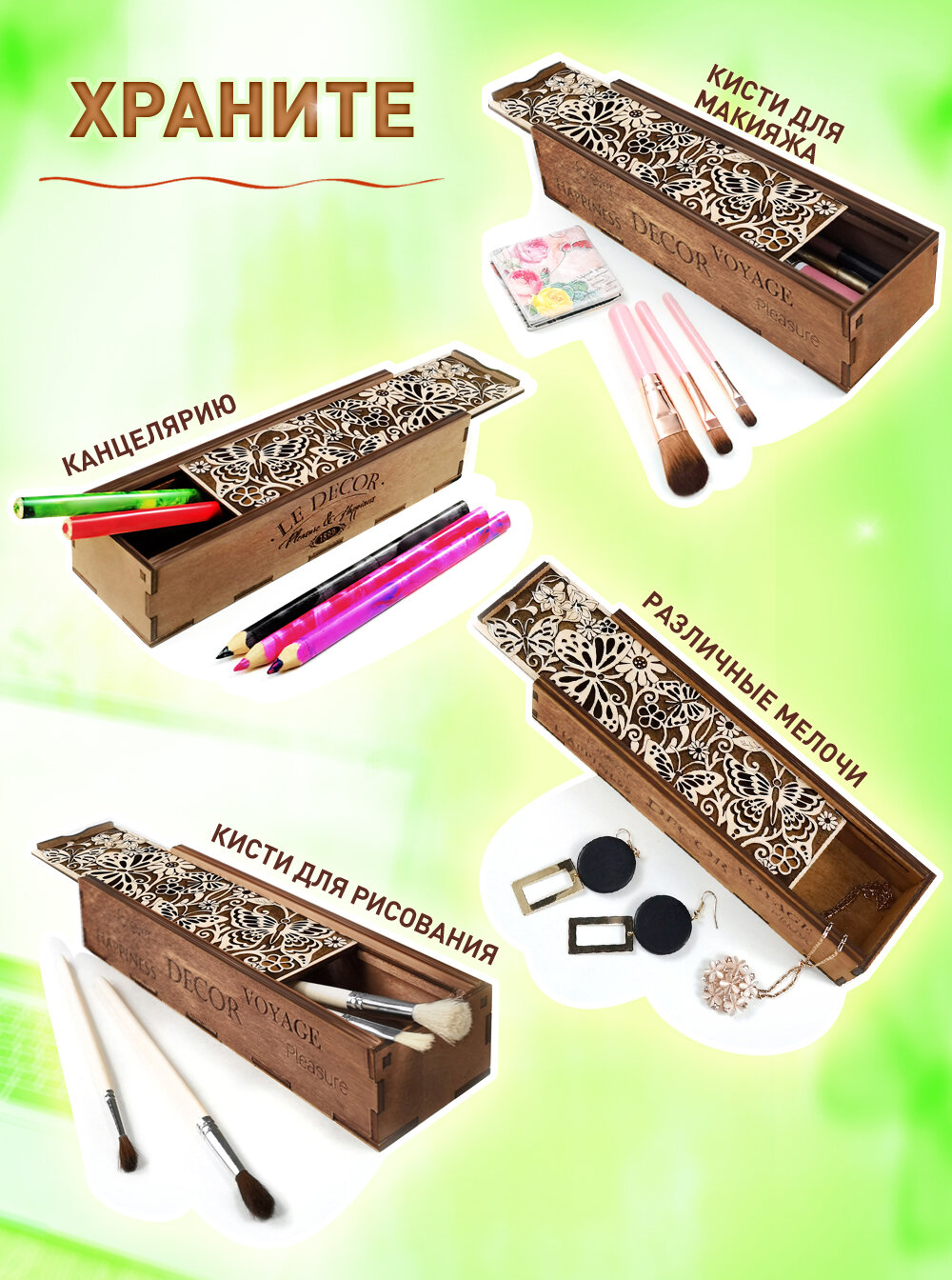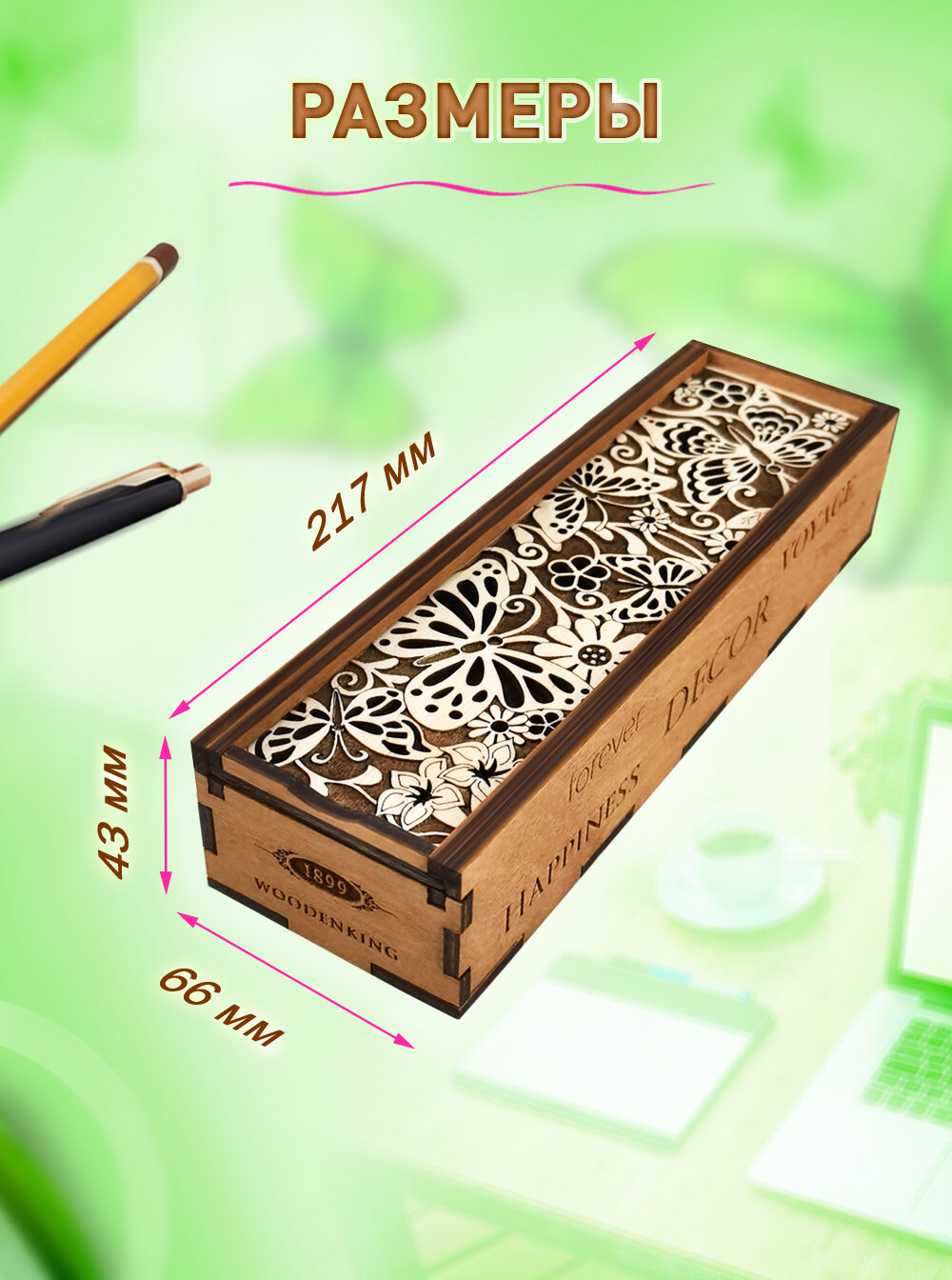 10 цен на Пенал - шкатулка Woodenking из дерева для хранения канцелярии и бижутерии "Бабочки"