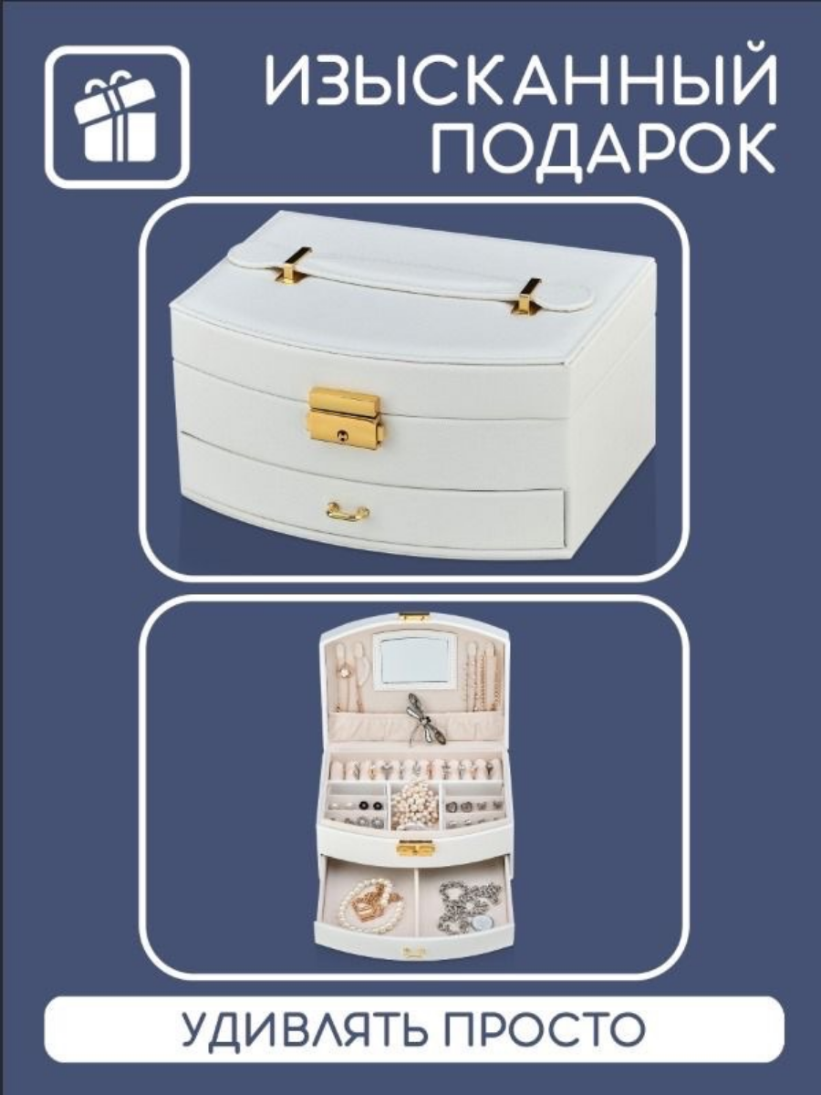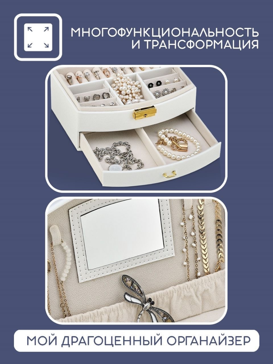 Отзывы на Шкатулка для украшений и бижутерии / Коробка для колец / Органайзер под украшения Tribeca White