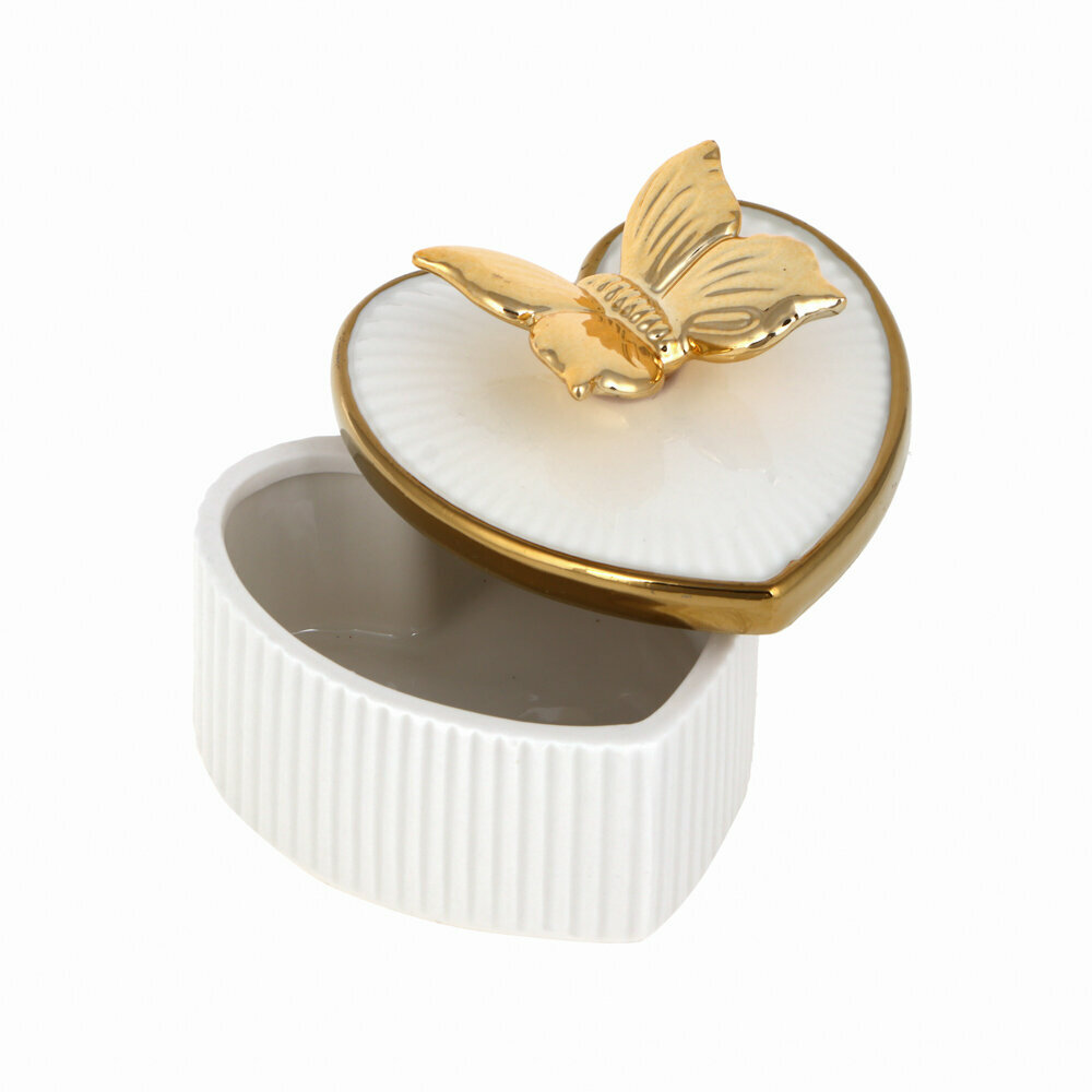 Шкатулка для украшений в виде сердца 10х8,2 см, керамика, белая с золотой бабочкой информация:
