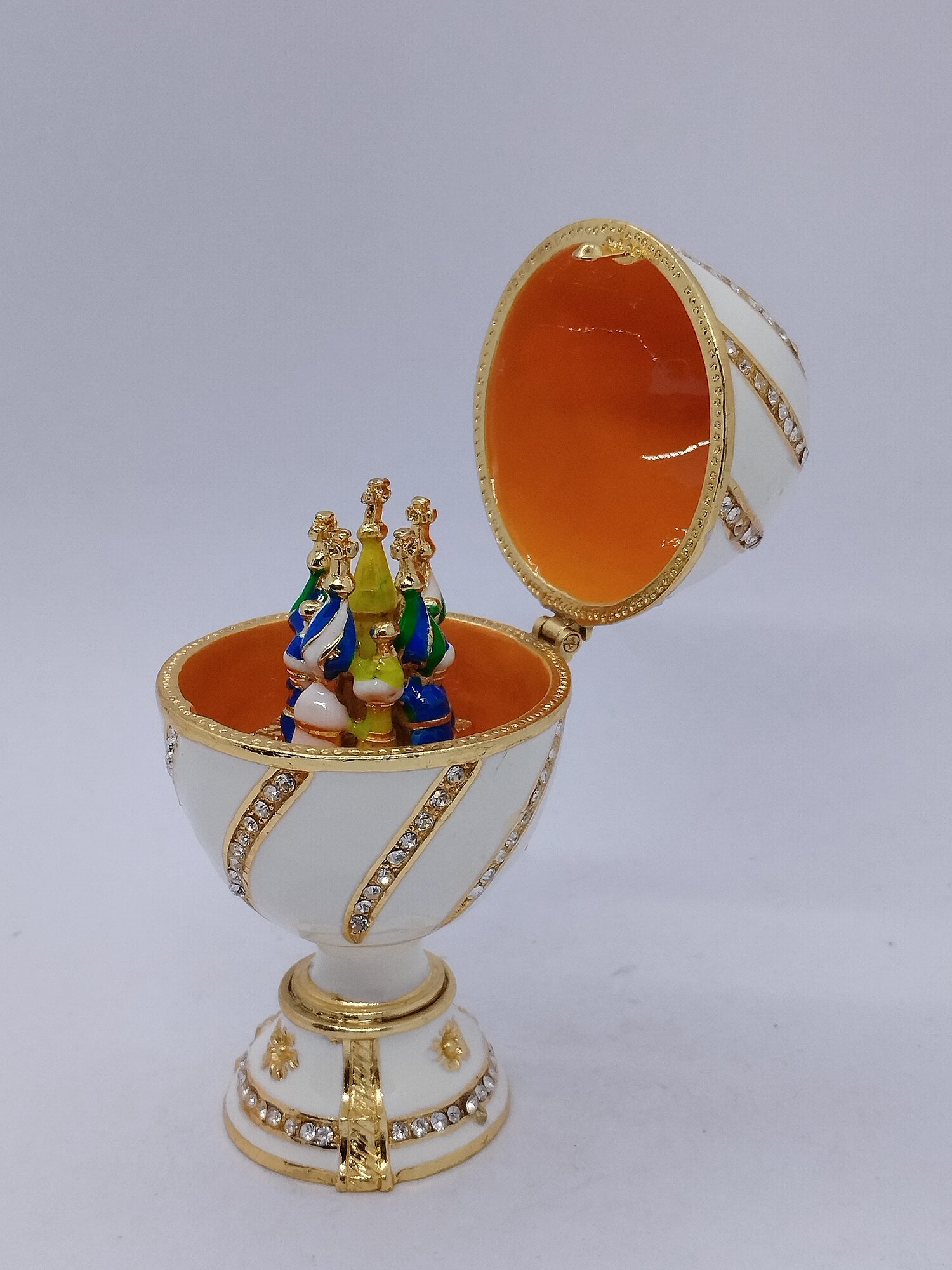 Яйцо Фаберже витое с фигуркой Храма Василия Блаженного, белое информация:
