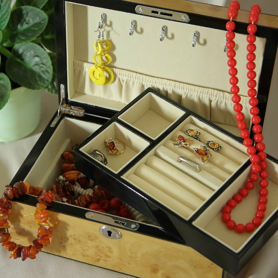 Шкатулка для украшений с зеркалом Remecoclub музыукальная из полимера, 22x12x10 см