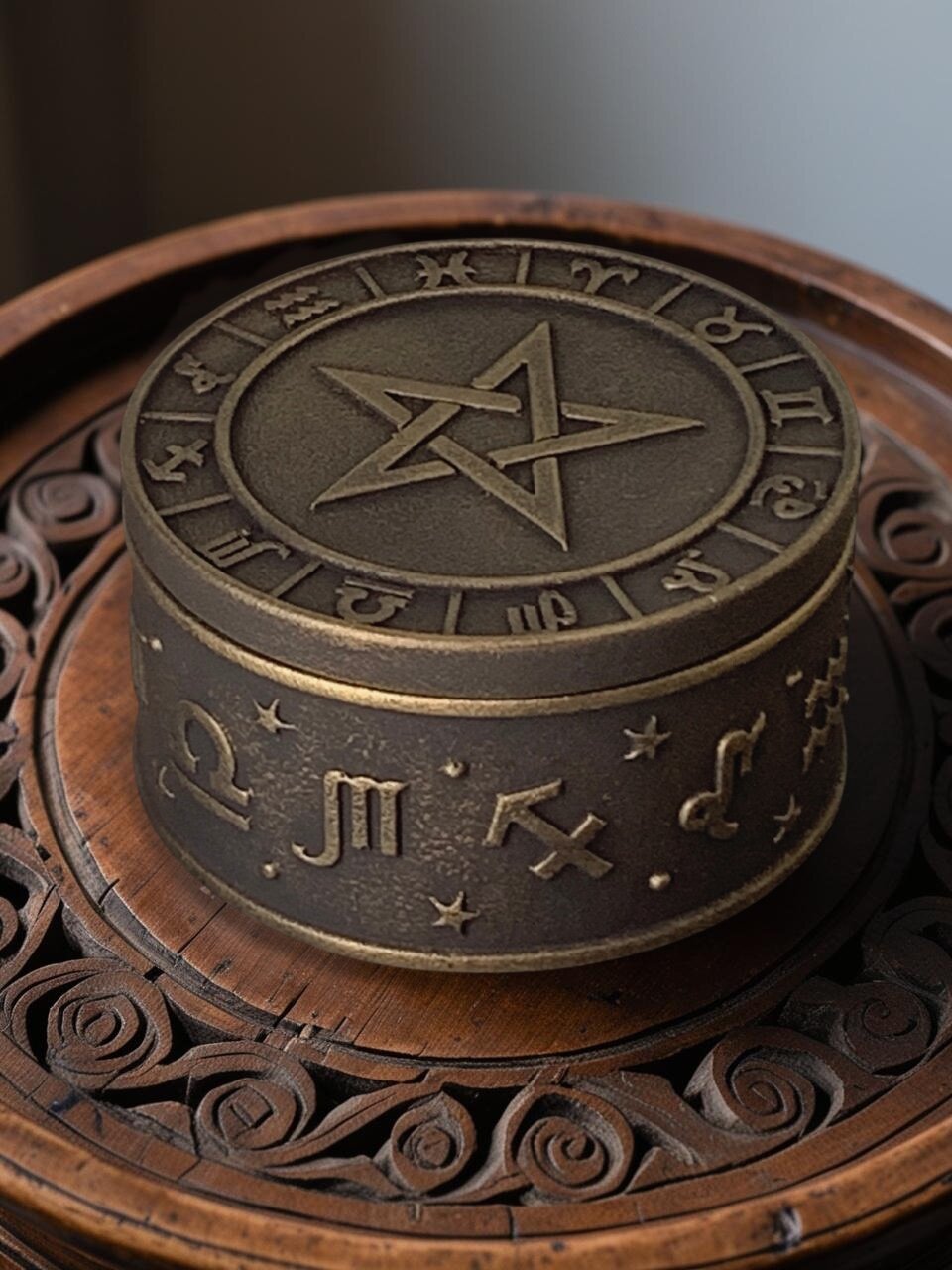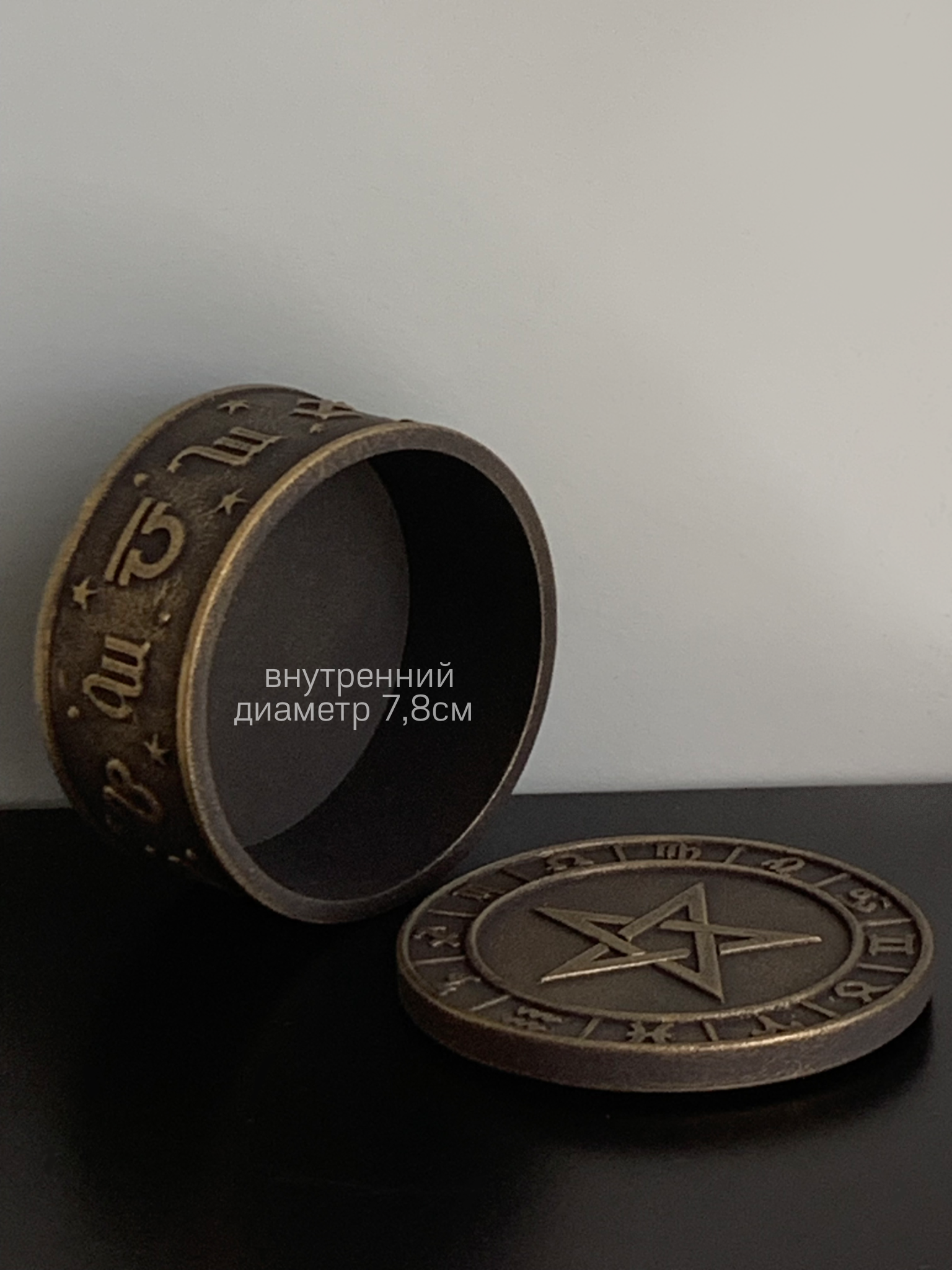 Отзывы на Шкатулка Lerukami "Пентакль", гипс, круглая, 4,8x8,8 см, цвет бронзовый/золотистый