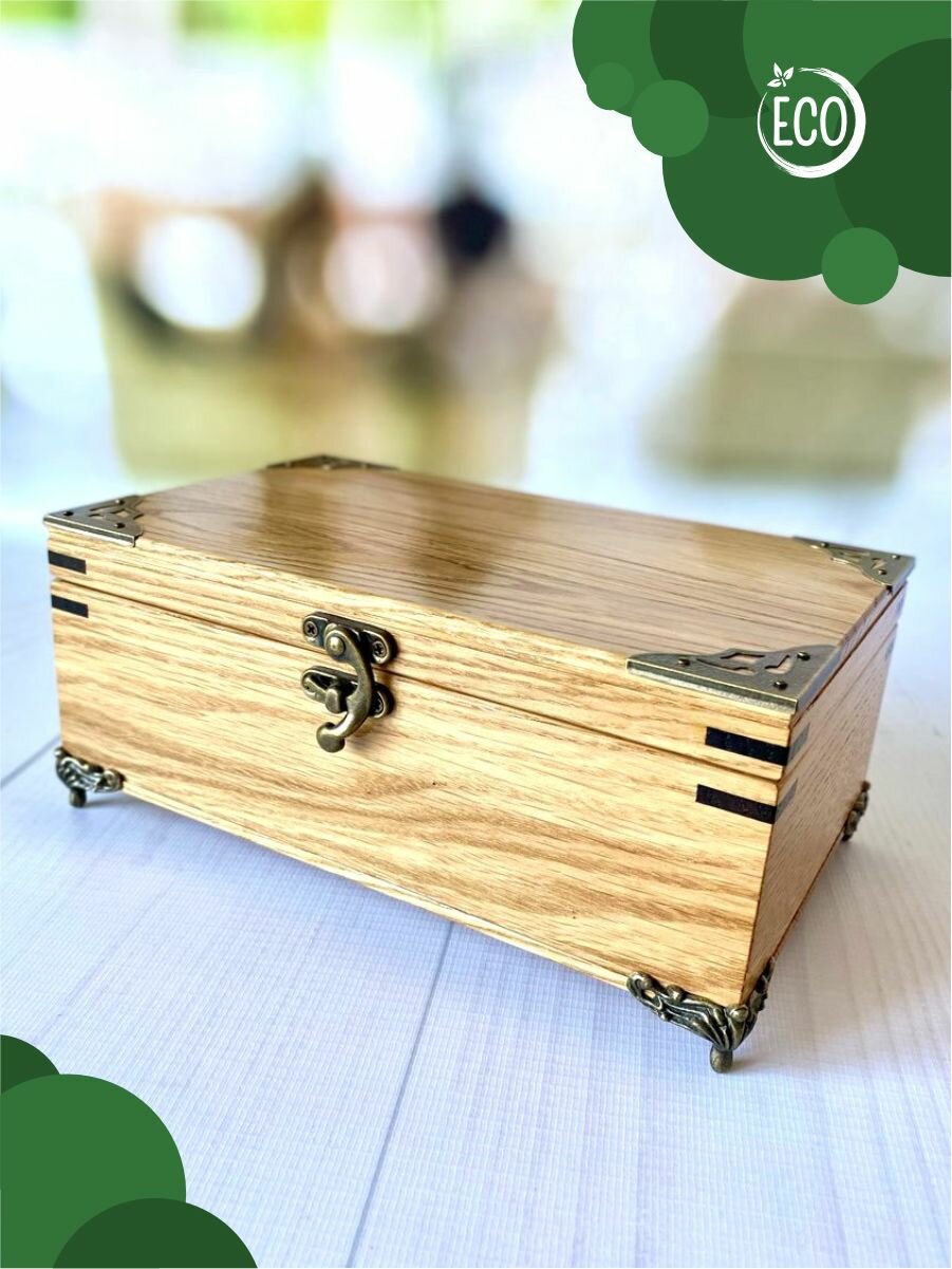 Отзывы на Шкатулка деревянная, из массива дуба с уголками и ножками 21х13 см, Лесная Сказка