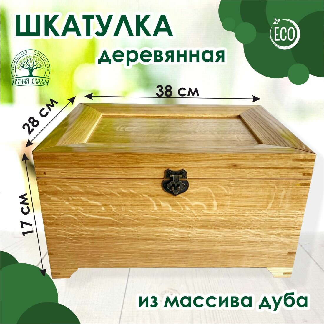 Шкатулка деревянная универсальная, массив дуба, 38х28 см, высота 17 см, Лесная Сказка информация: