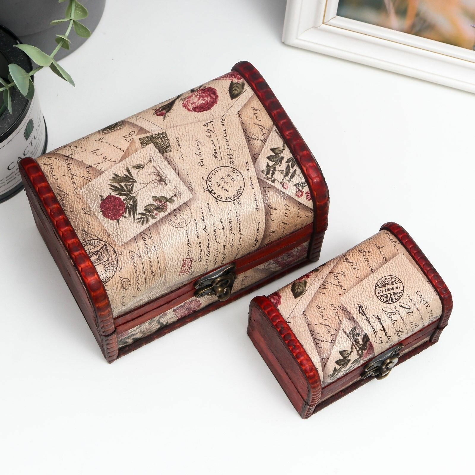 Шкатулка дерево состаренная "Розы и марки" набор 2 шт 6,5х11,5х7,5, 10,5х17х10,5 см 1 194 ₽