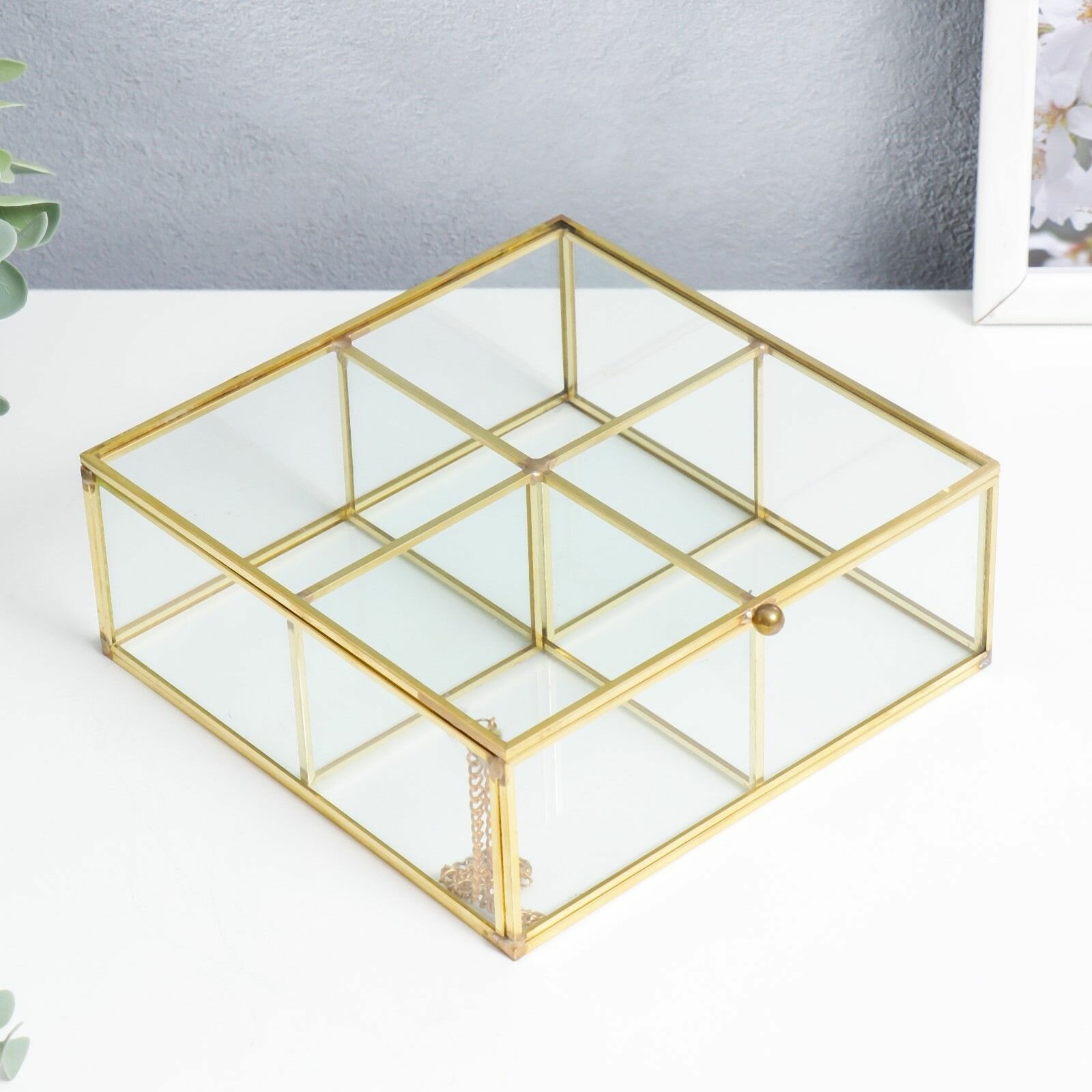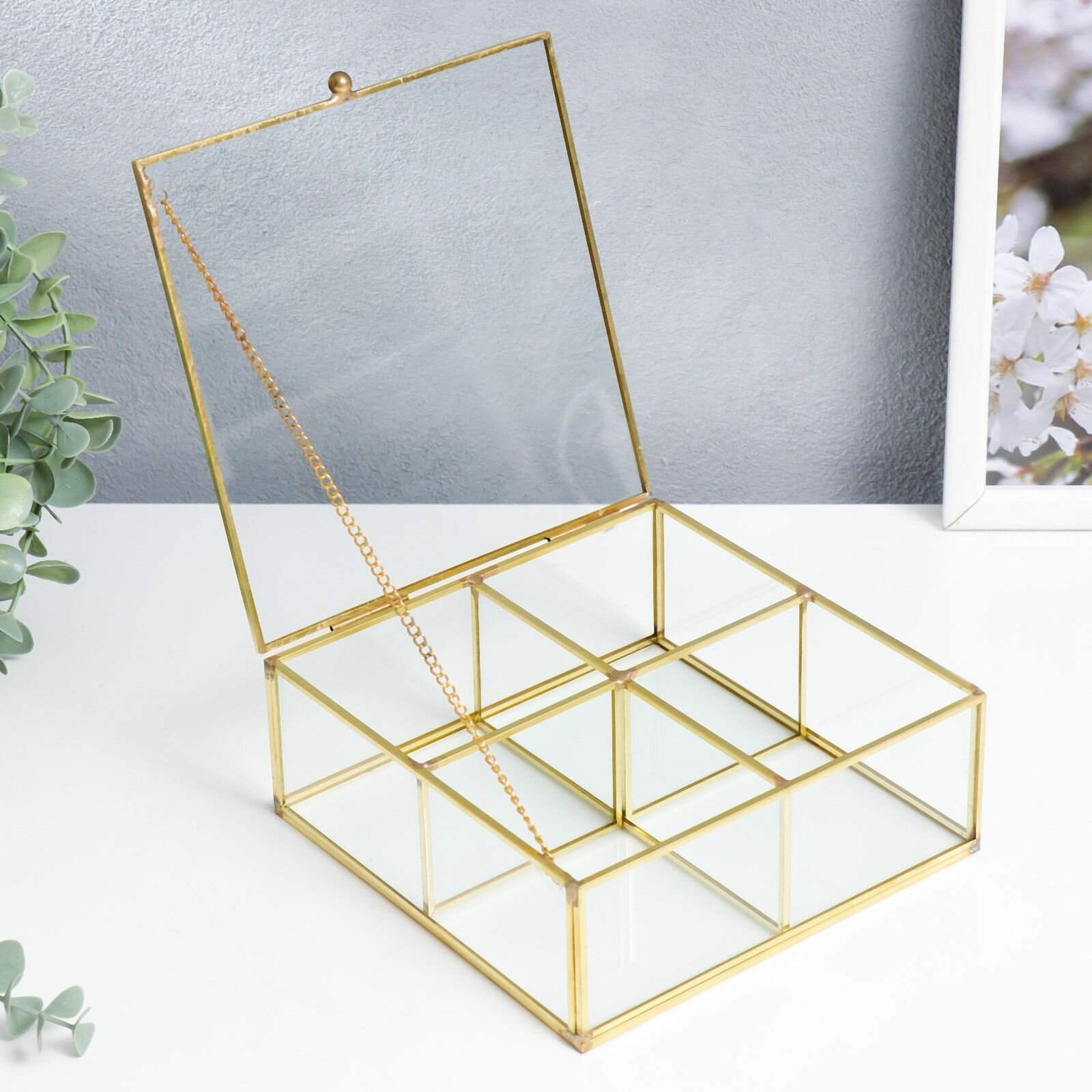 10 цен на Шкатулка стекло с металлическим каркасом с делениями"Квадрат с гранями" 7х16х16 см