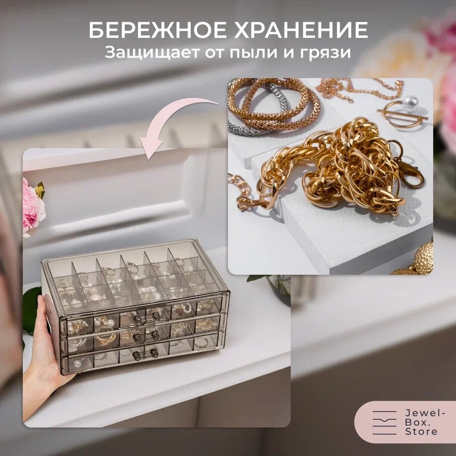 10 цен на Прозрачная шкатулка для украшений черная/органайзер для украшений, сережек, колец