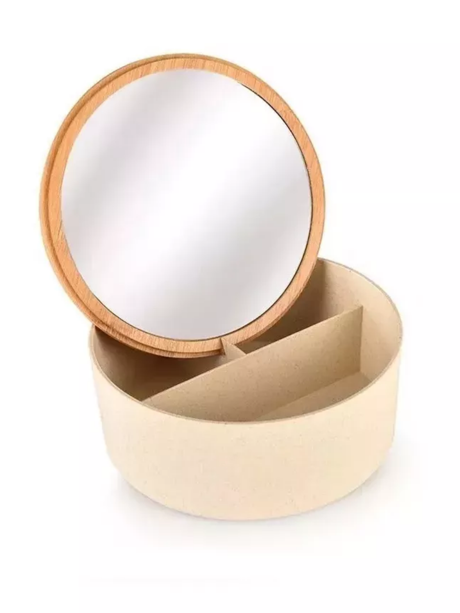 10 цен на Шкатулка 1000 и 1 подарок, с зеркалом, круглая, бежевая, 14х6см