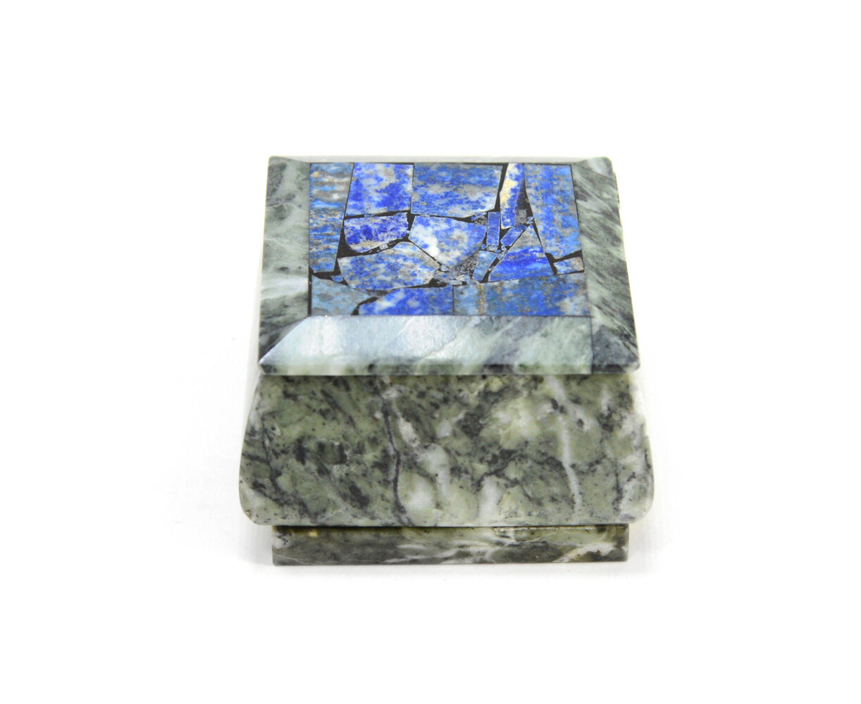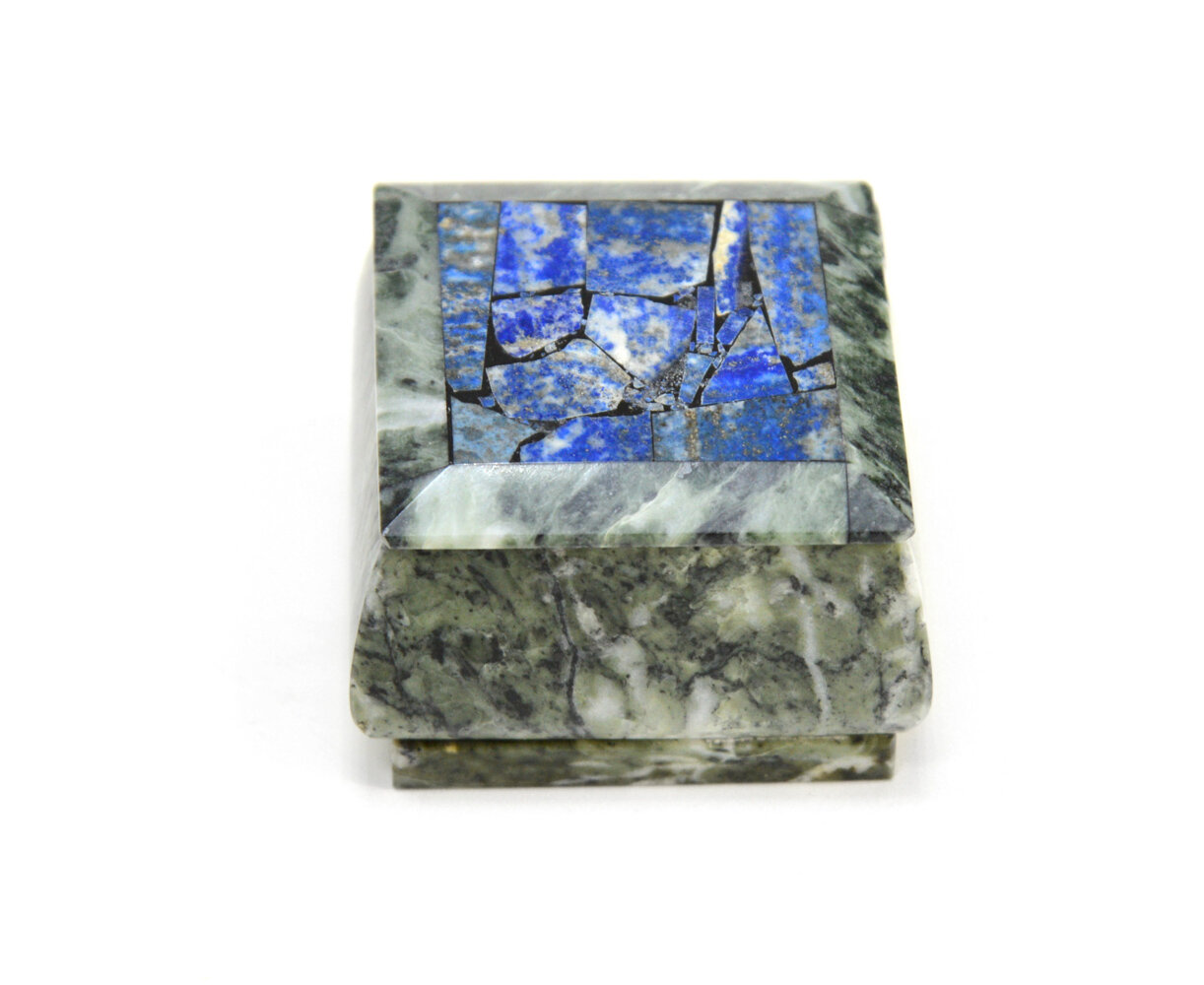 Шкатулка из змеевика и лазурита 8,5x8,5x6 см информация: