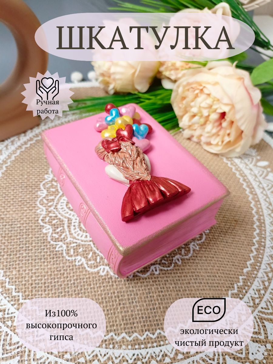 Отзывы на Шкатулка в виде книги DekorAng "Девочка с шарами", для мелочей, ручная работа, ручная роспись, гипс, флок, 1 отделение