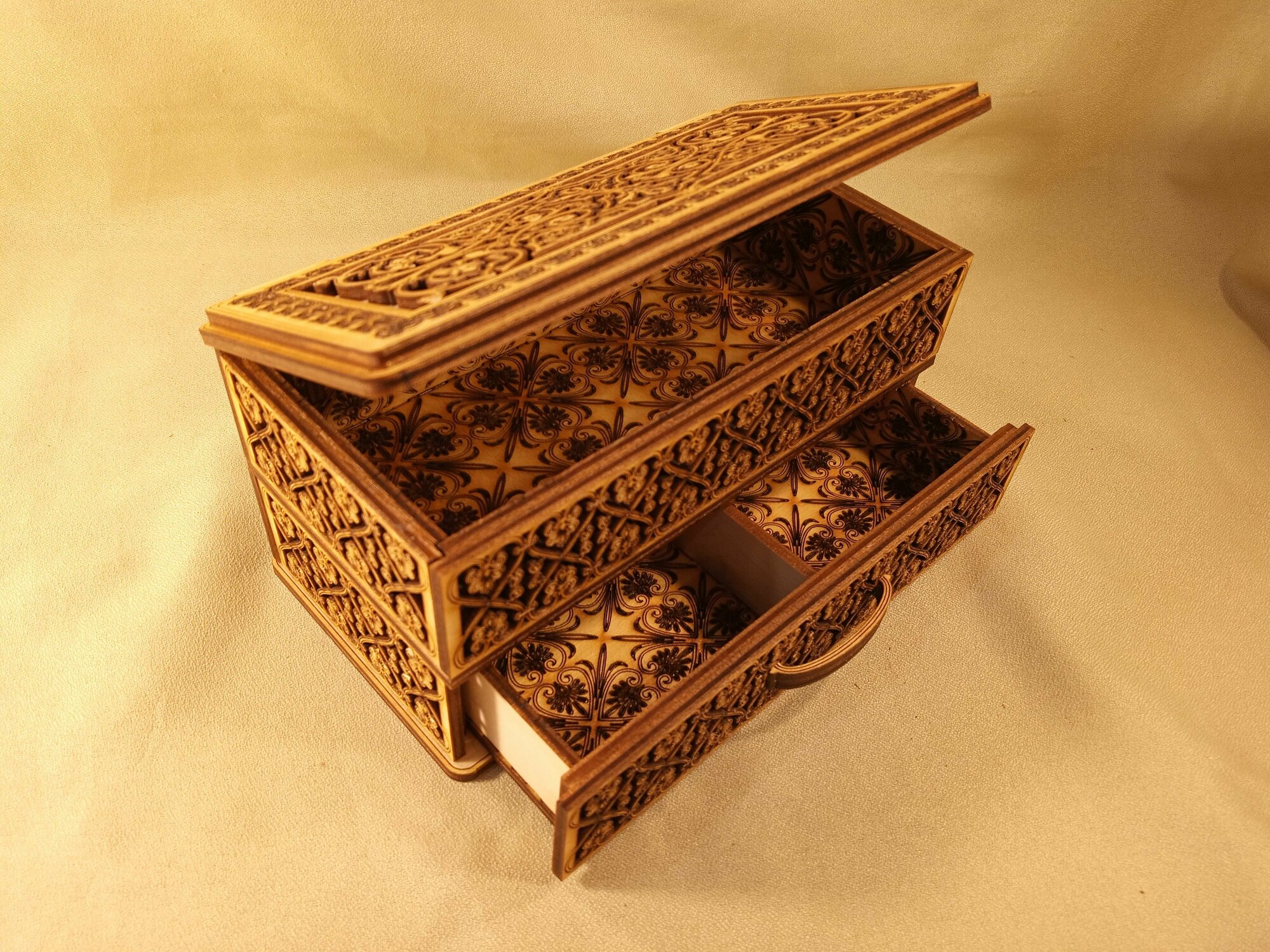 Шкатулка-купюрница двухэтажная "Орнамент" информация: