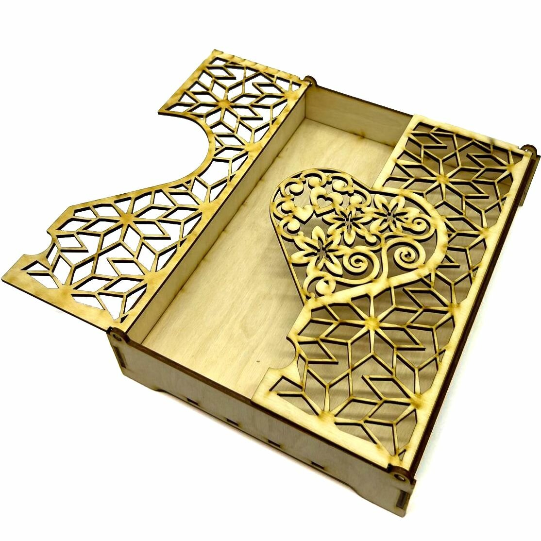 Ажурная коробочка-шкатулка для украшений и подарков с сердцем