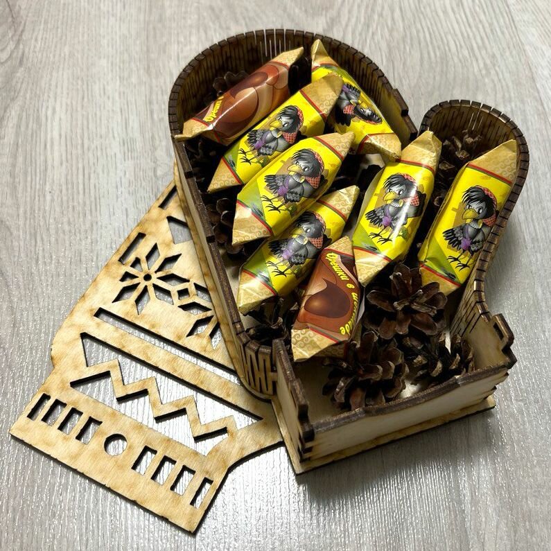 Ажурная коробочка-шкатулка для украшений и подарков "Варежка" информация:
