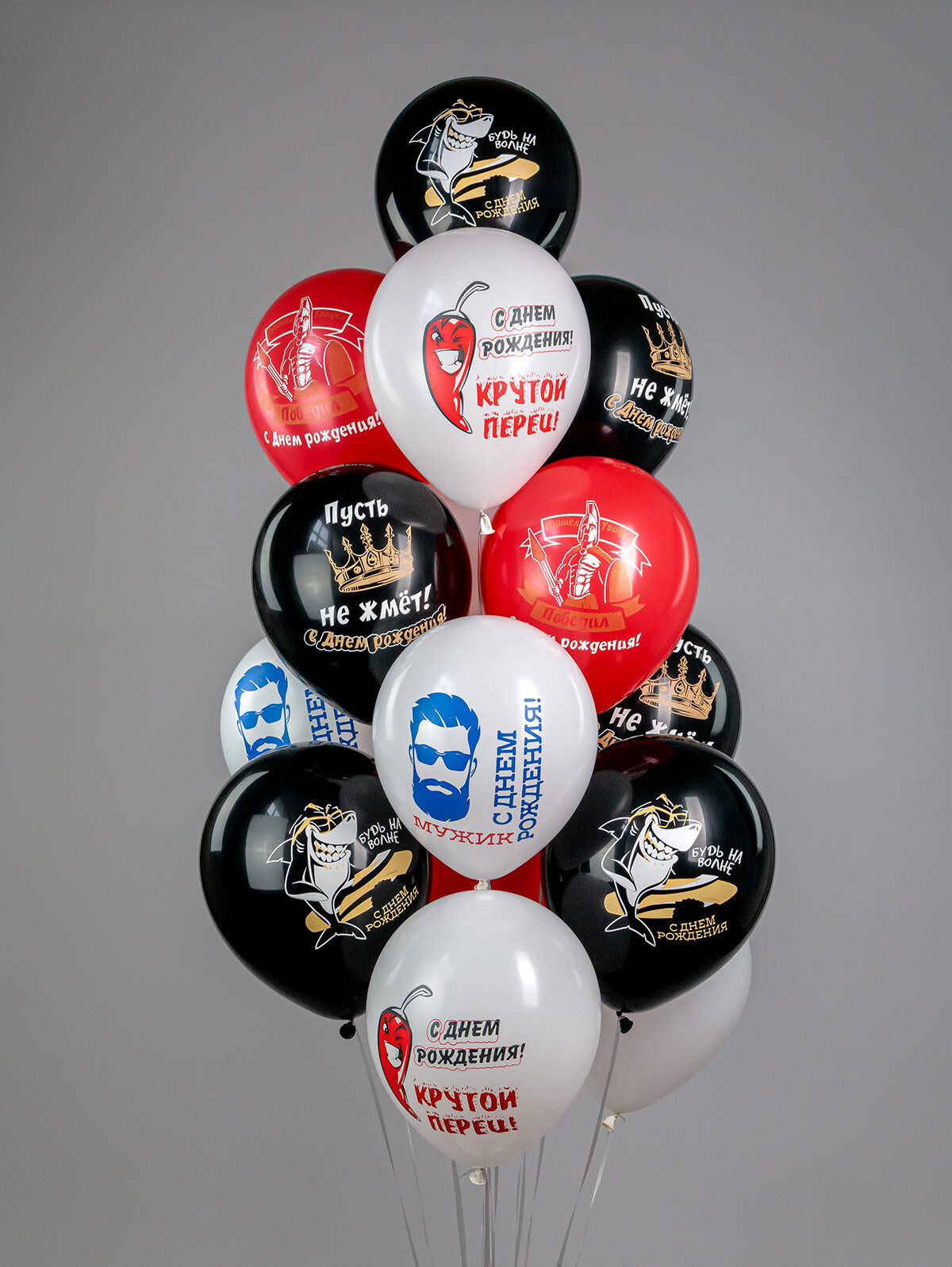 Шарики воздушные для мужчины, мужа, парня на праздник С Днем Рождения "Крутой перец" 15 шт информация: