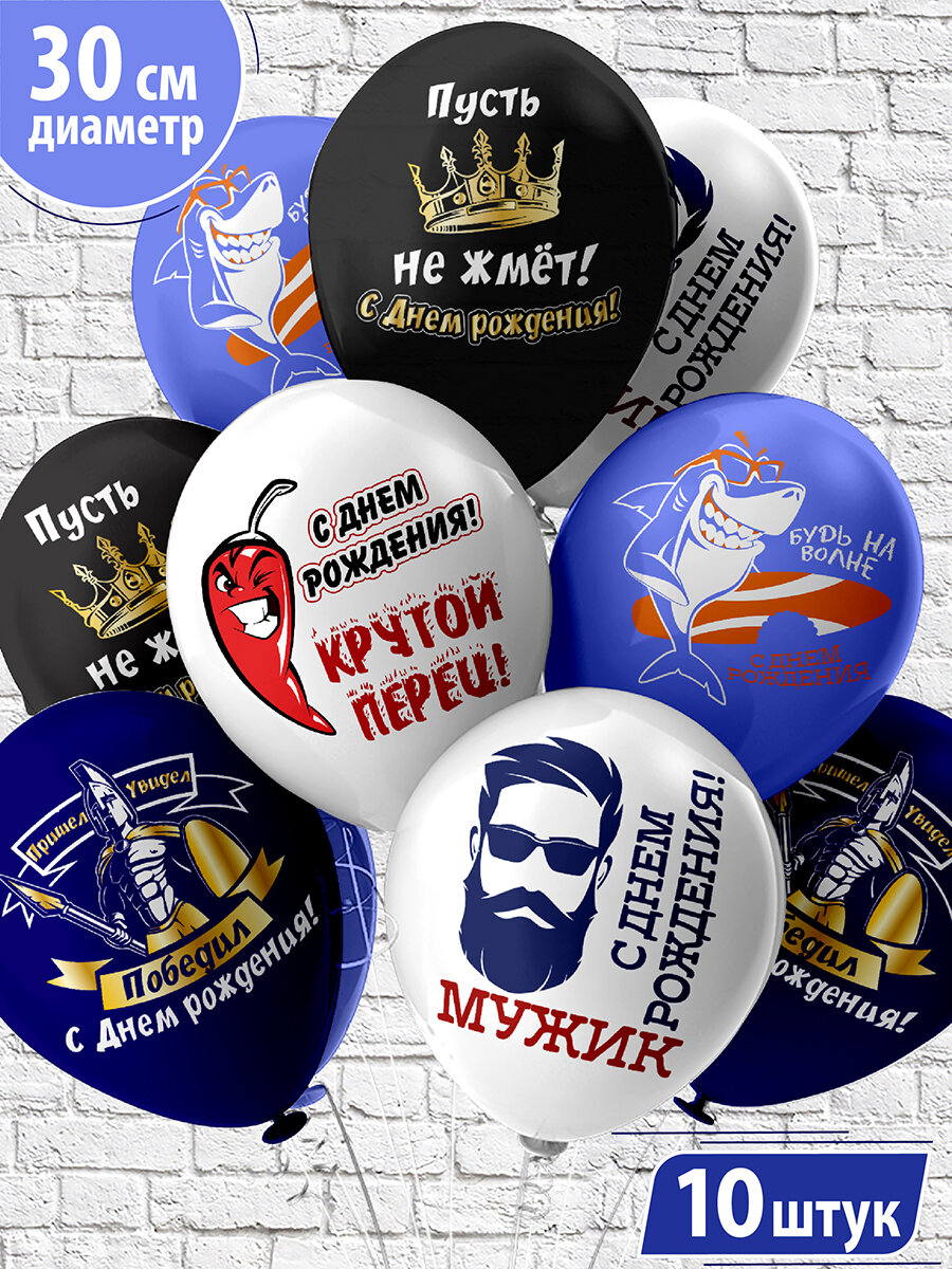 Воздушные шары для мужчины на день рождения "Живи со вкусом" 30 см набор 10 штук 5 дизайнов 219 ₽