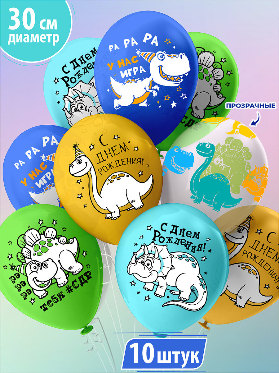 10 цен на Шарики воздушные для детей на праздник С Днем Рождения "Динозаврики" 10 шт
