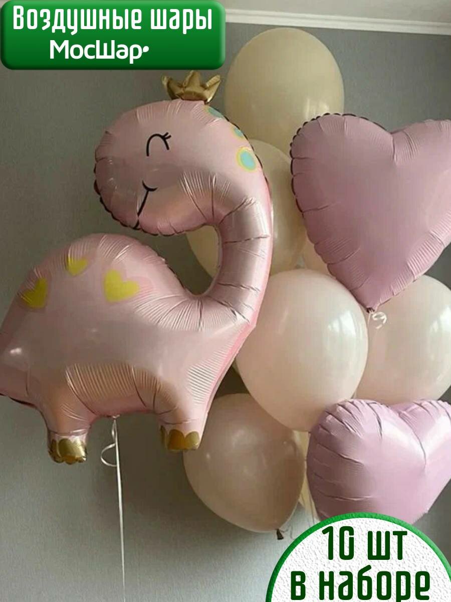 10 цен на Набор воздушных шаров МосШар, Динозаврик розовый в короне, 10 шт.