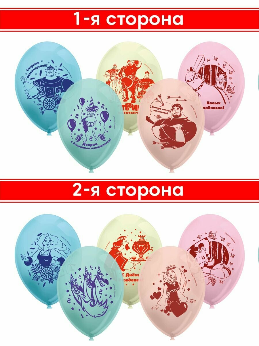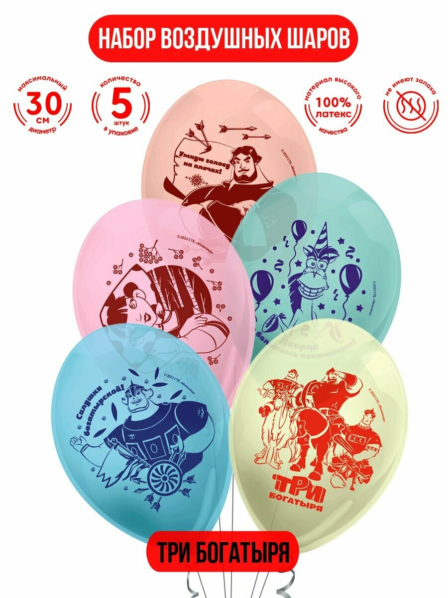 Набор воздушных шаров для праздника ND Play / Три Богатыря (30 см, латекс, 5 шт.), 305042 информация: