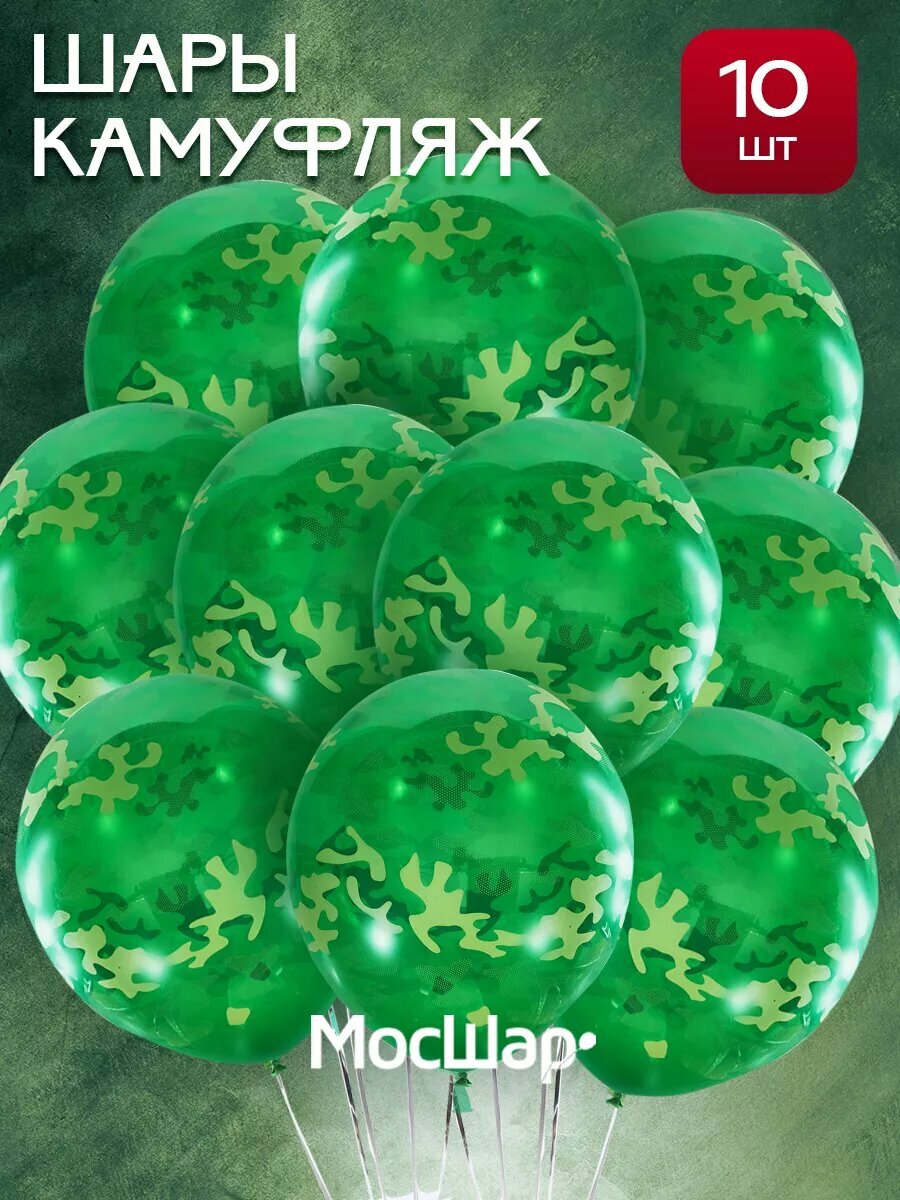 Набор воздушных латексных шаров мосшар, премиум класса "Камуфляж" -10шт, высота 30см информация:
