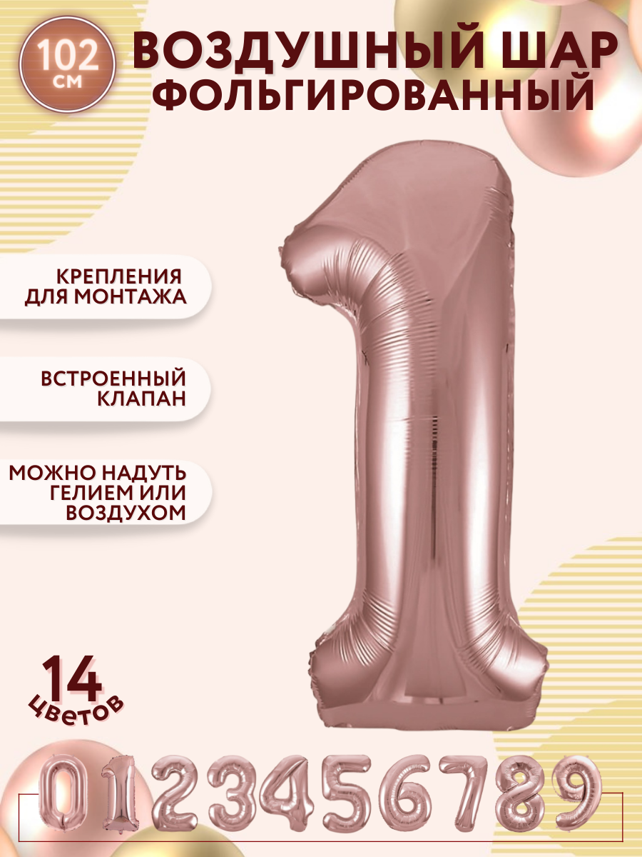 Фольгированный воздушный шар цифра 1 один розовое золото 102 см - Мосшар информация: