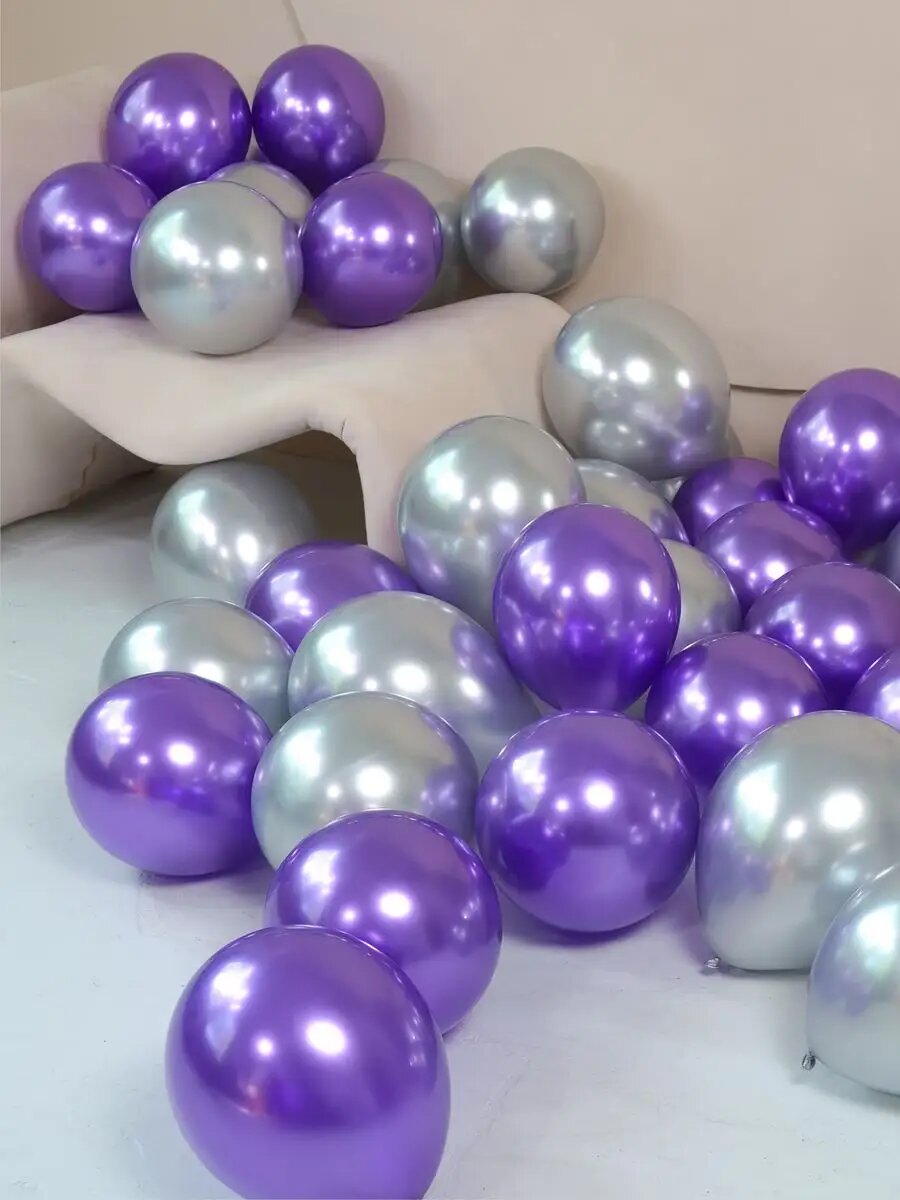 Отзывы на Шары воздушные от бренда Типография "ТМТ" , хром, цвет фиолетовый + серебро, набор 20 штук