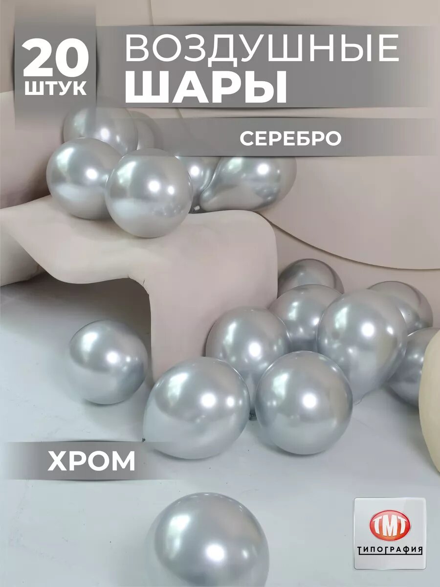 Шары воздушные от бренда Типография "ТМТ" , хром, цвет серебро, набор 20 штук информация: