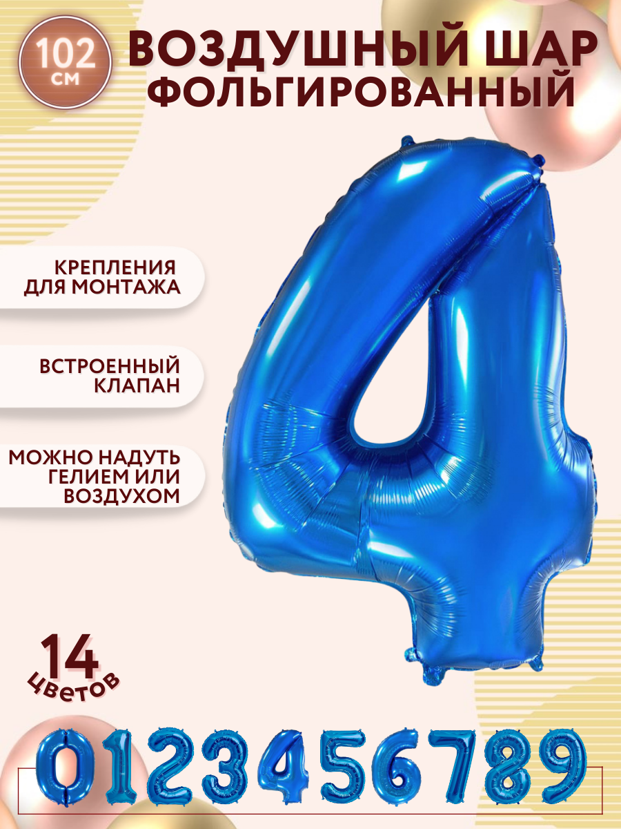 Фольгированный воздушный шар цифра 4 четыре синий 100см - Мосшар информация: