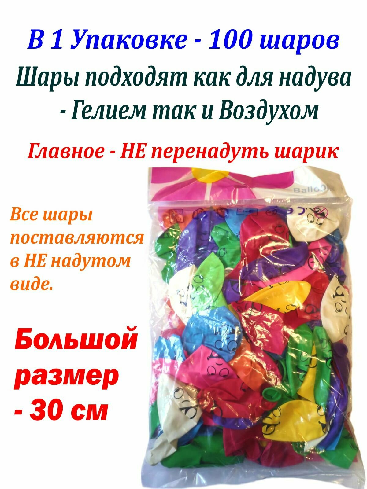 Воздушные шары 100штук / Смайлики / в упаковке 100 штук / из латекса и имеют размер 12 дюймов (30 см) информация: