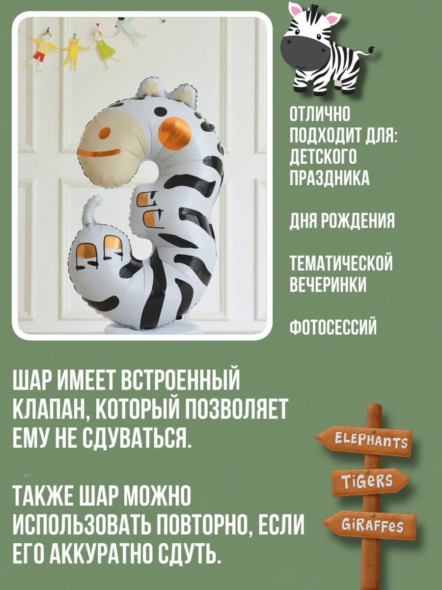 Мосшар Фольгированный шар-цифра 3 Животные информация: