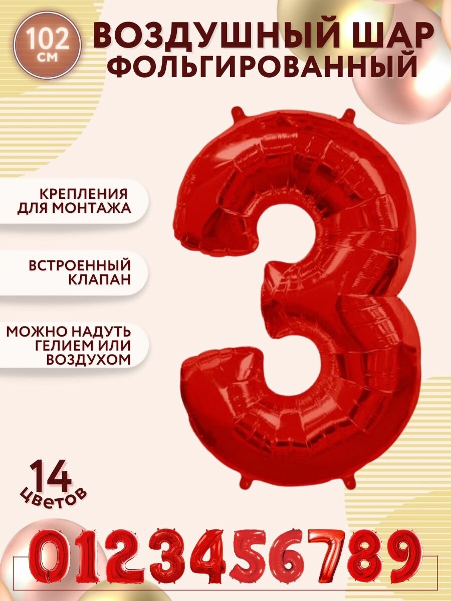 Фольгированный воздушный шар цифра 3 три красный 100см - Мосшар информация: