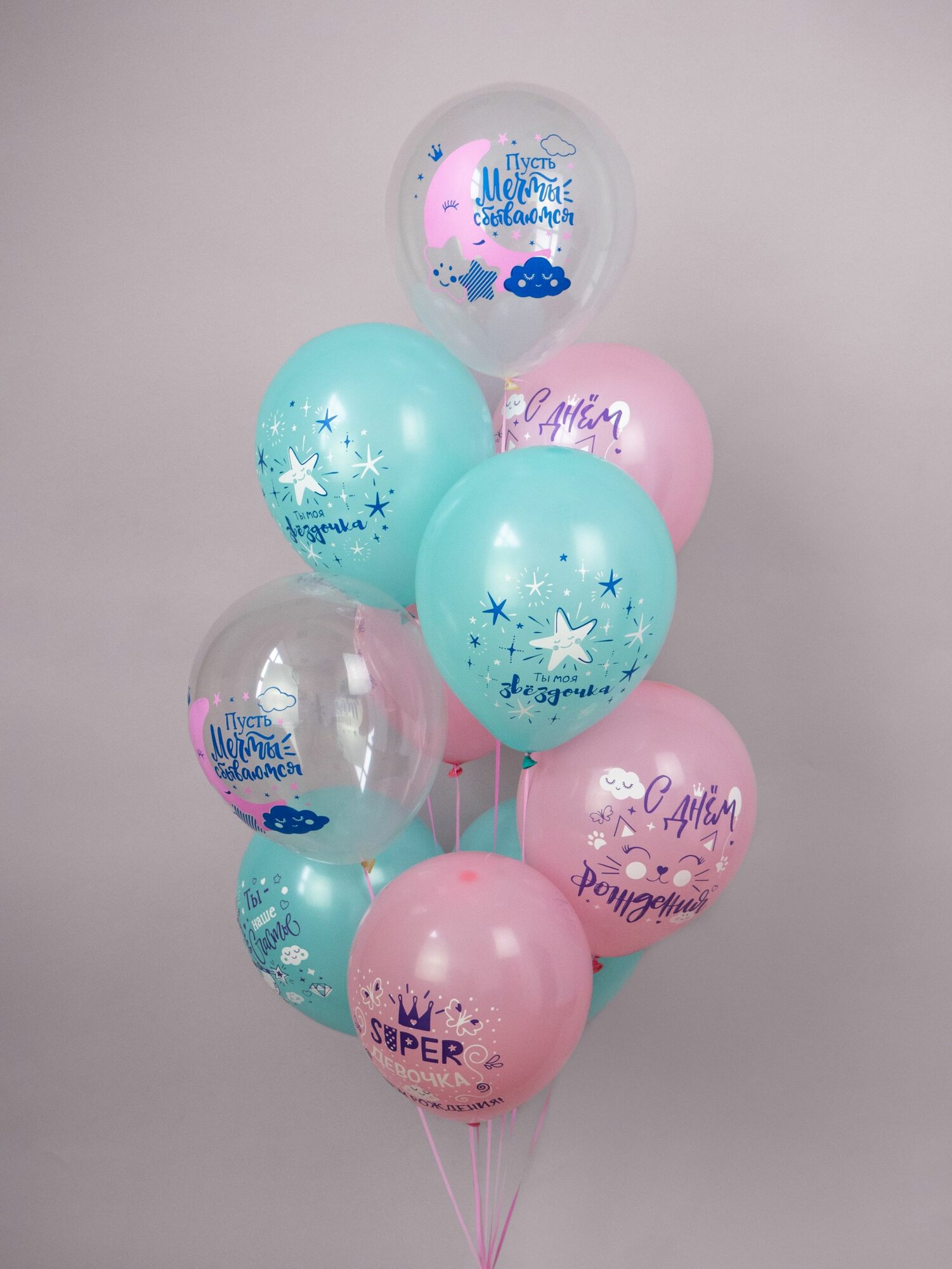 Шарики воздушные для девочки "Сияй ярче звезд!" 30 см набор 10 штук 5 дизайнов 190 ₽