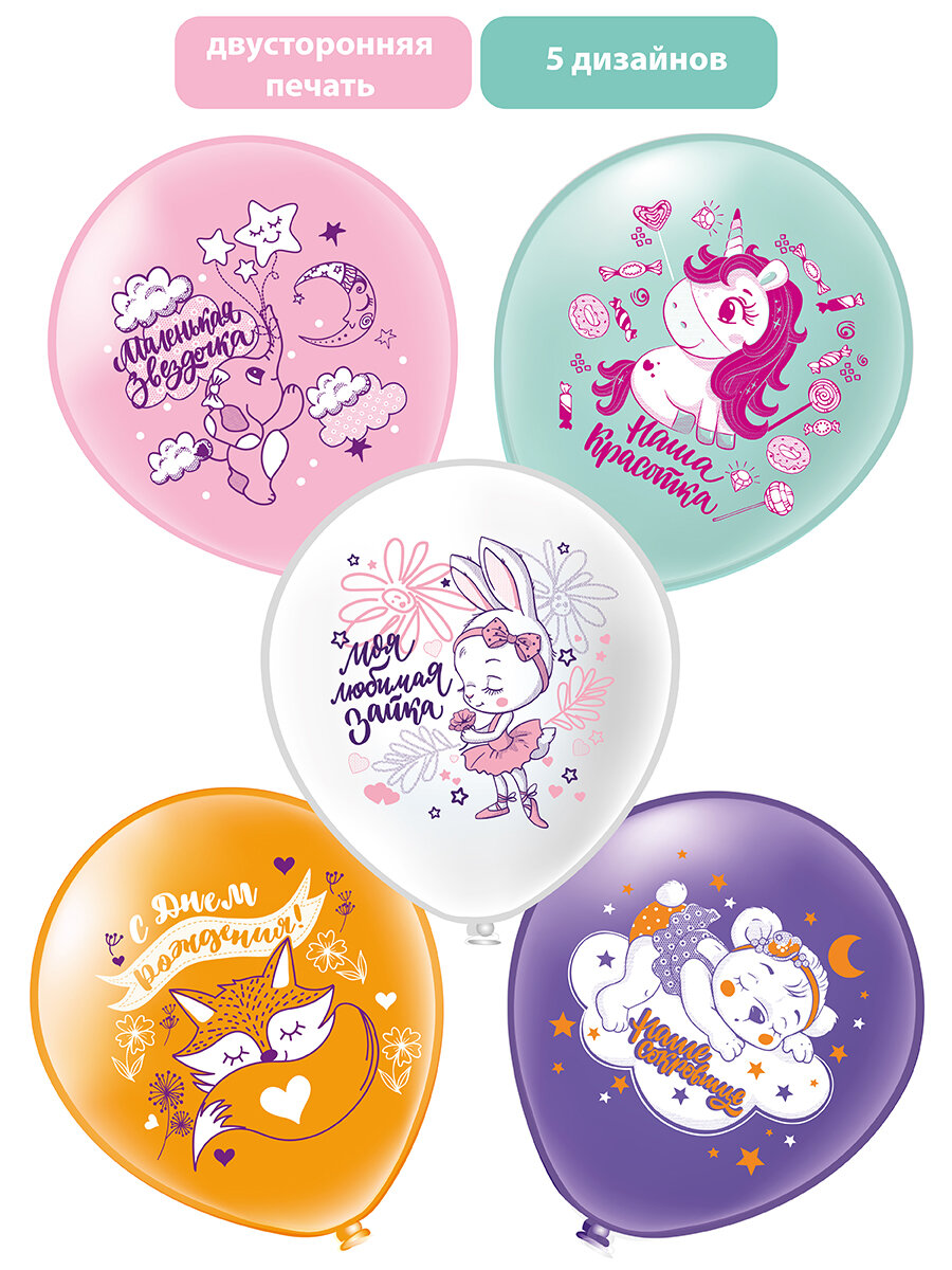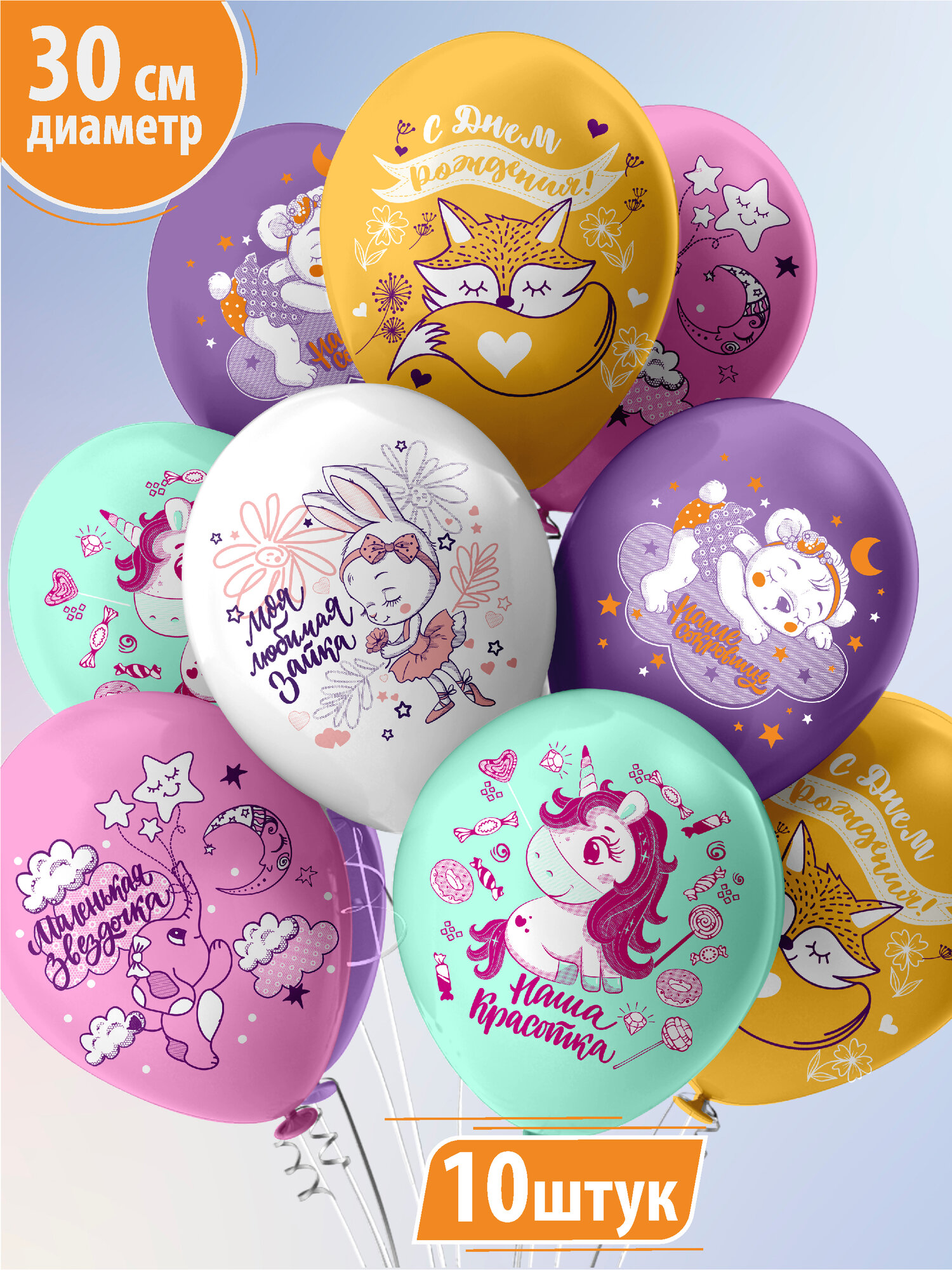 Шарики воздушные для девочки "Сияй ярче звезд!" 30 см набор 10 штук 5 дизайнов 190 ₽