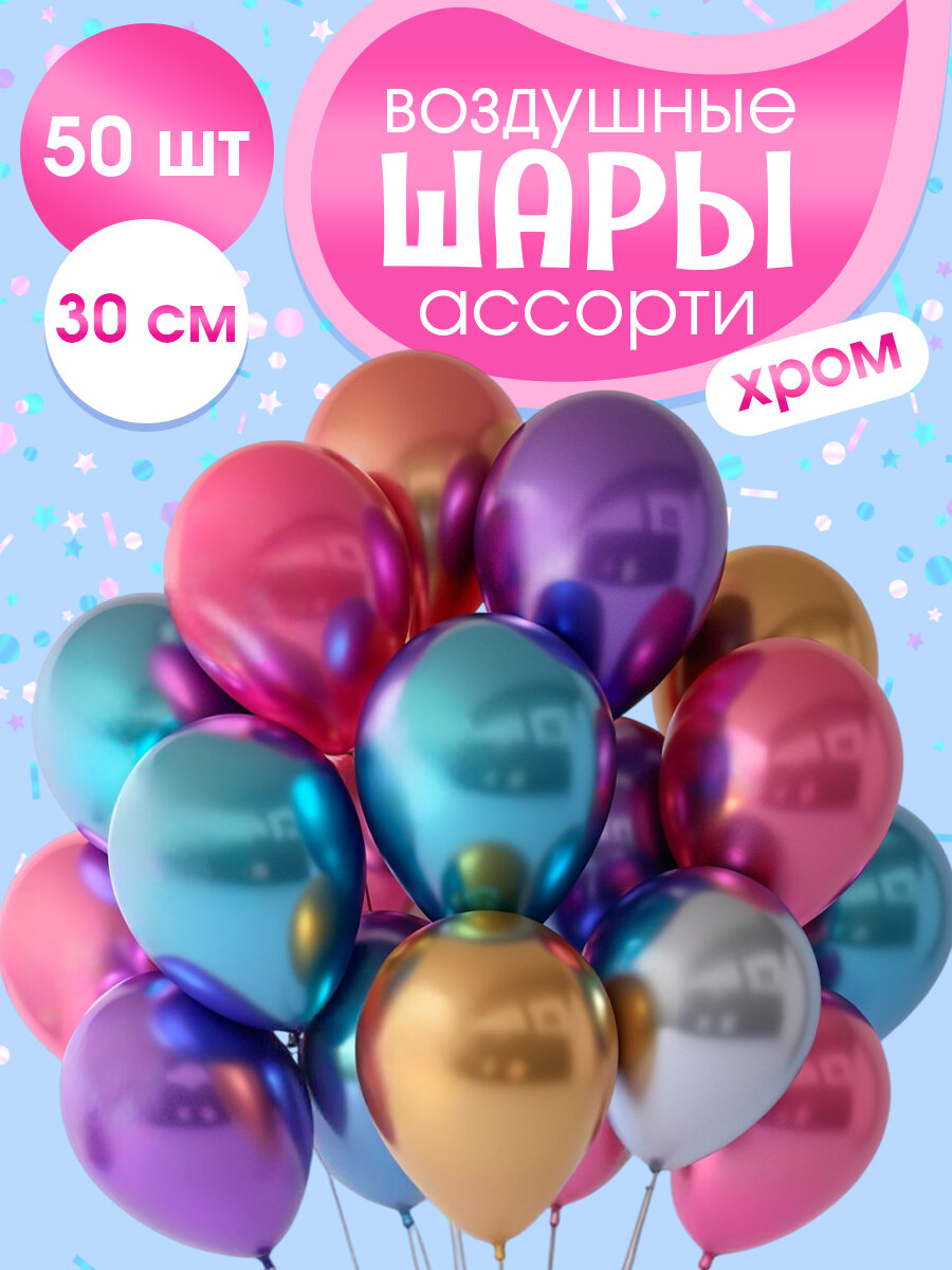 Отзывы на Шарики воздушные хром разноцветные ассорти на выпускной, набор 50 штук, 30 см